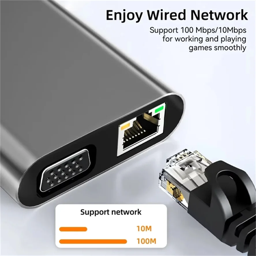 Puerto tipo C 11 en 1: compatible con HDMI + USB3.0*1 + USB2.0*3 + PD 87W +TF+SD+100M RJ45+ AUX+VGA