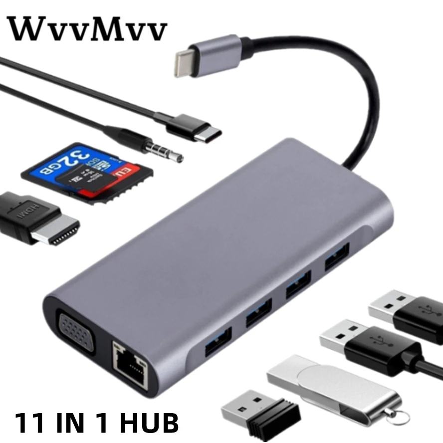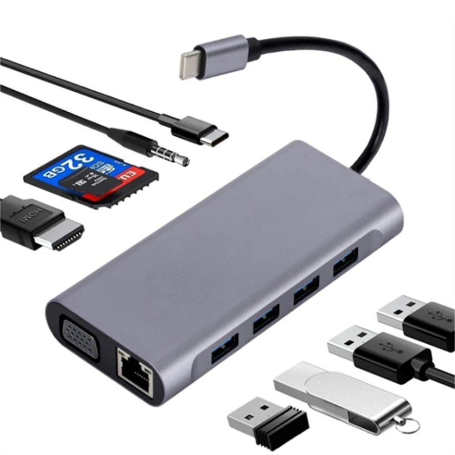 Hub 11 en 1 tipo C 4K 30Hz USB C a HDMI compatible con adaptador USB 3,0 convertidor acoplamiento HUB estación divisor para MacBook Pro Air