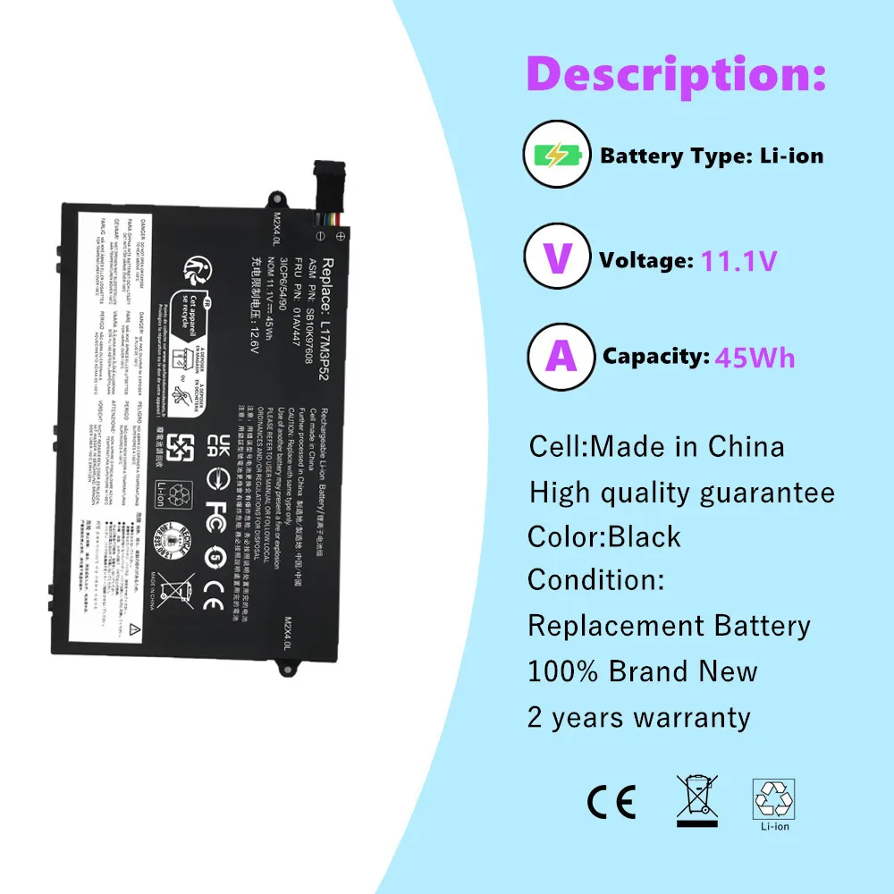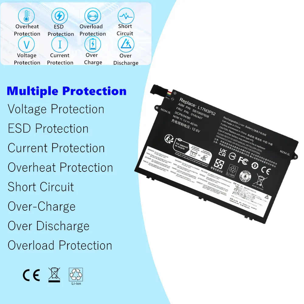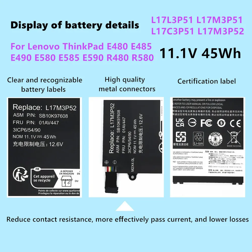 Comprar 11,1 V 45Wh L17M3P52 L17C3P51 L17M3P51 01AV445 batería del ordenador portátil para Lenovo ThinkPad R480 E590 E480 E580 E485 E595 E585 E490 E495