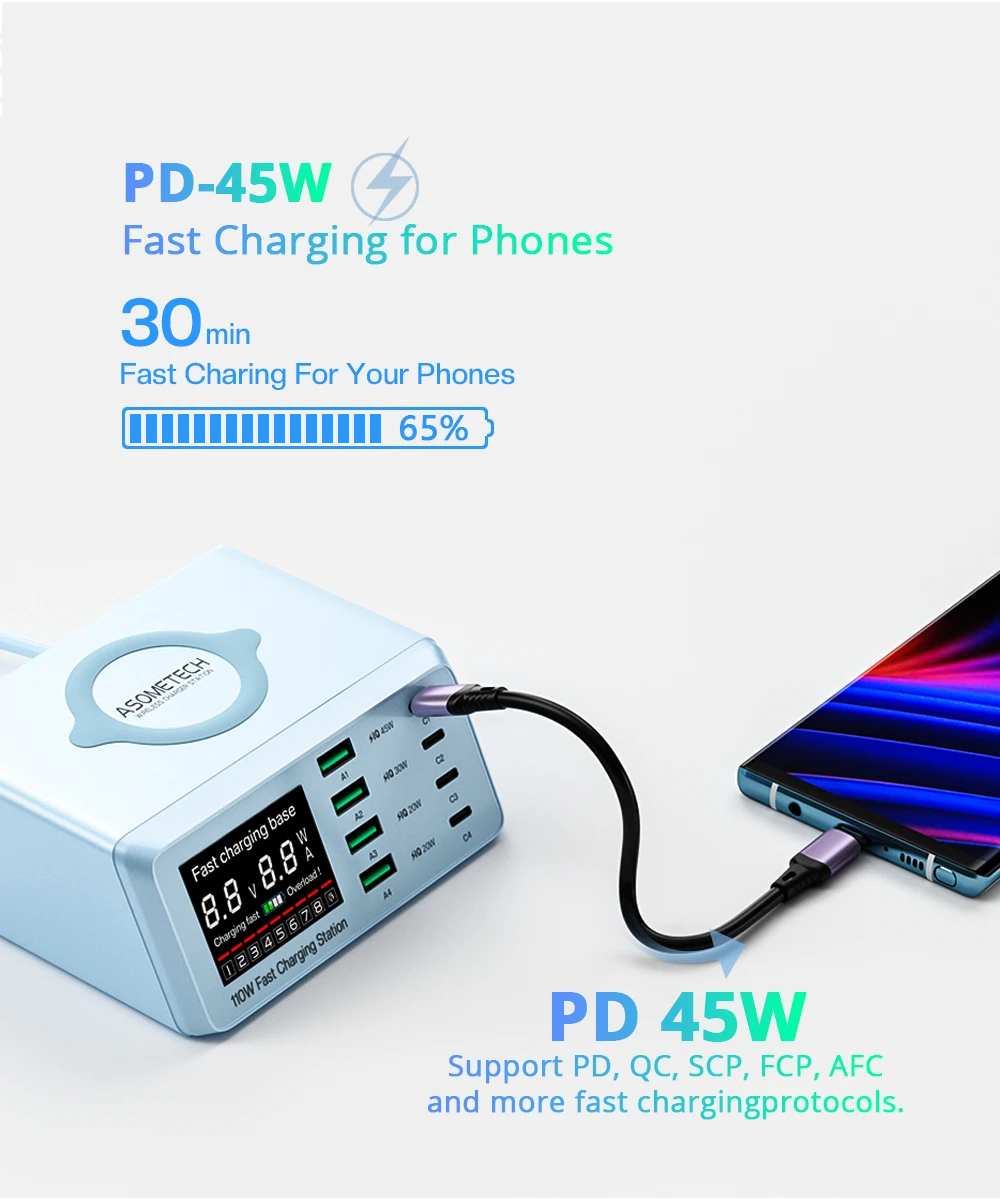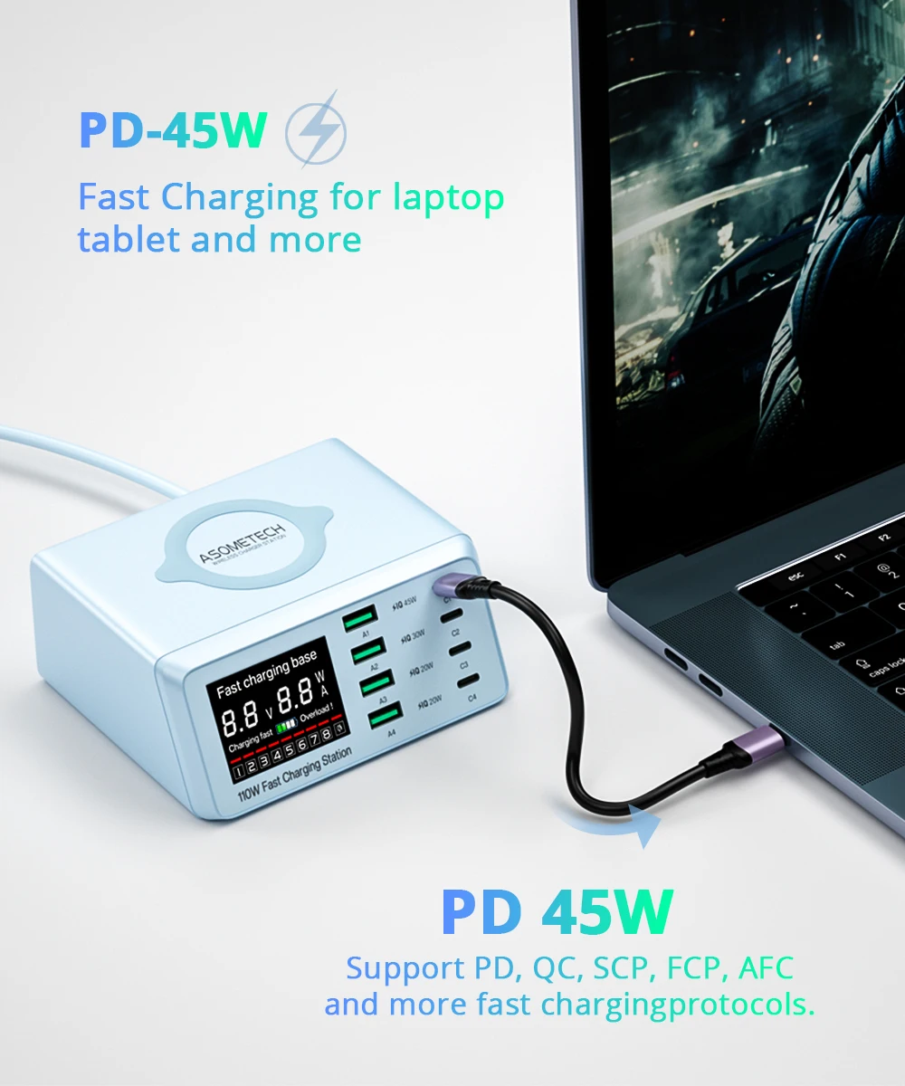 ASOMETECH-Cargador rápido de escritorio de 110 W y 8 puertos