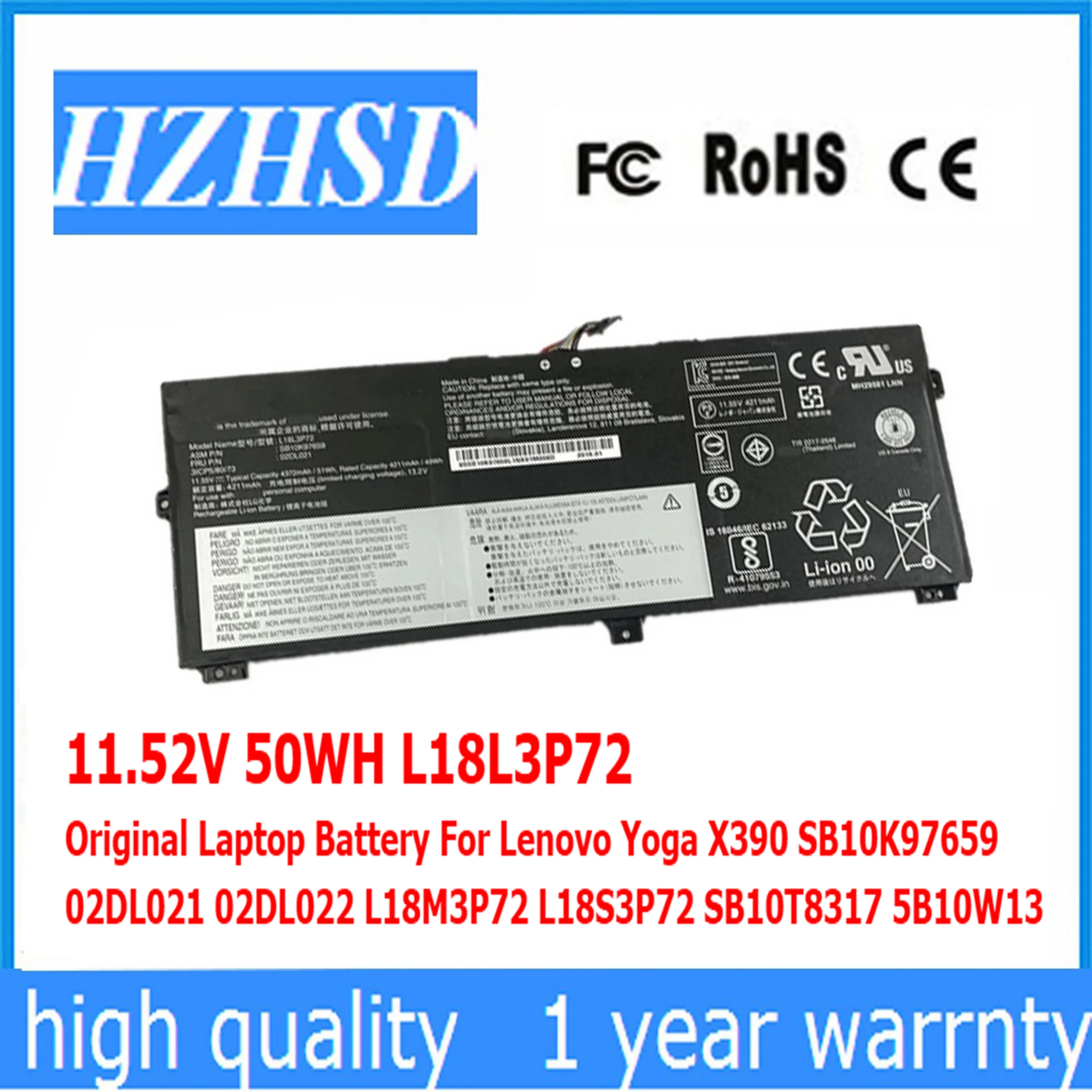Comprar 11,52 V 50WH L18L3P72 batería Original del ordenador portátil para Lenovo Yoga X390 SB10K97659 02DL021 02DL022 L18M3P72 L18S3P72 SB10T8317 5B10W13