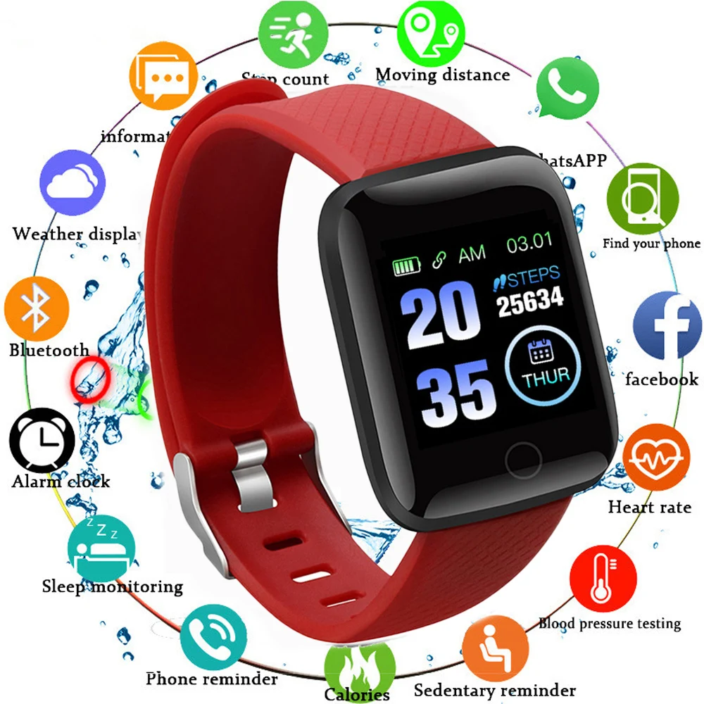 Reloj de pulsera inteligente 116 PLUS, pantalla a Color, frecuencia cardíaca, control de la presión arterial, movimiento de pista IP67, accesorios impermeables