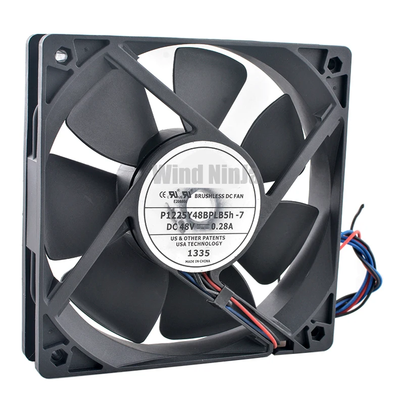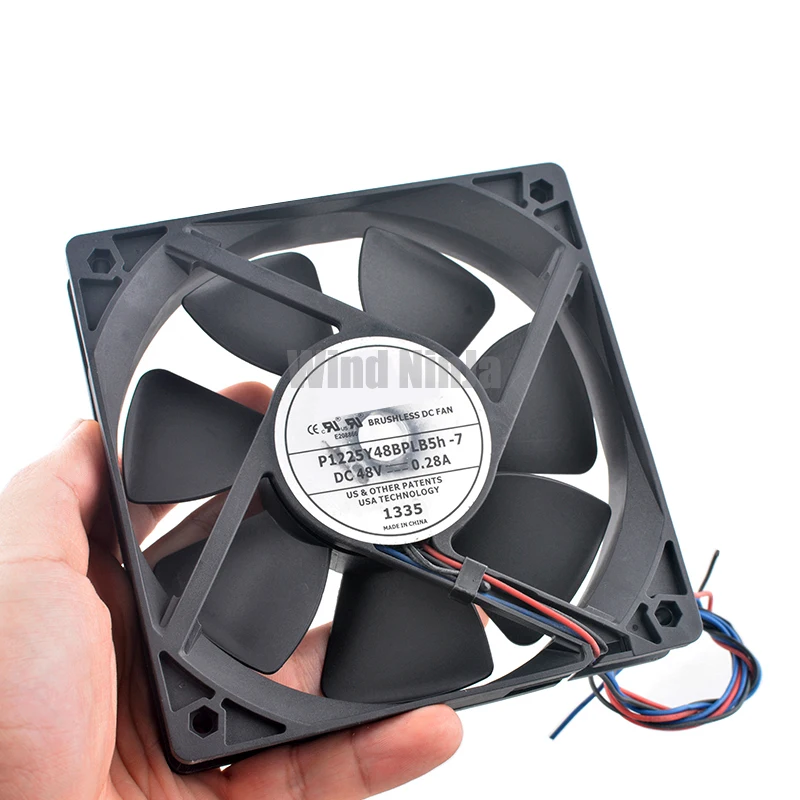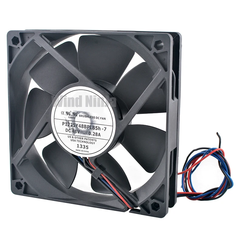 12 cm/120 mm P1225Y48BPLB5h-7 DC48V 0.28A Ventilador de enfriamiento con rodamiento de bolas dual de 3 pines 120x120x25 mm para convertidor de frecuencia de servidor