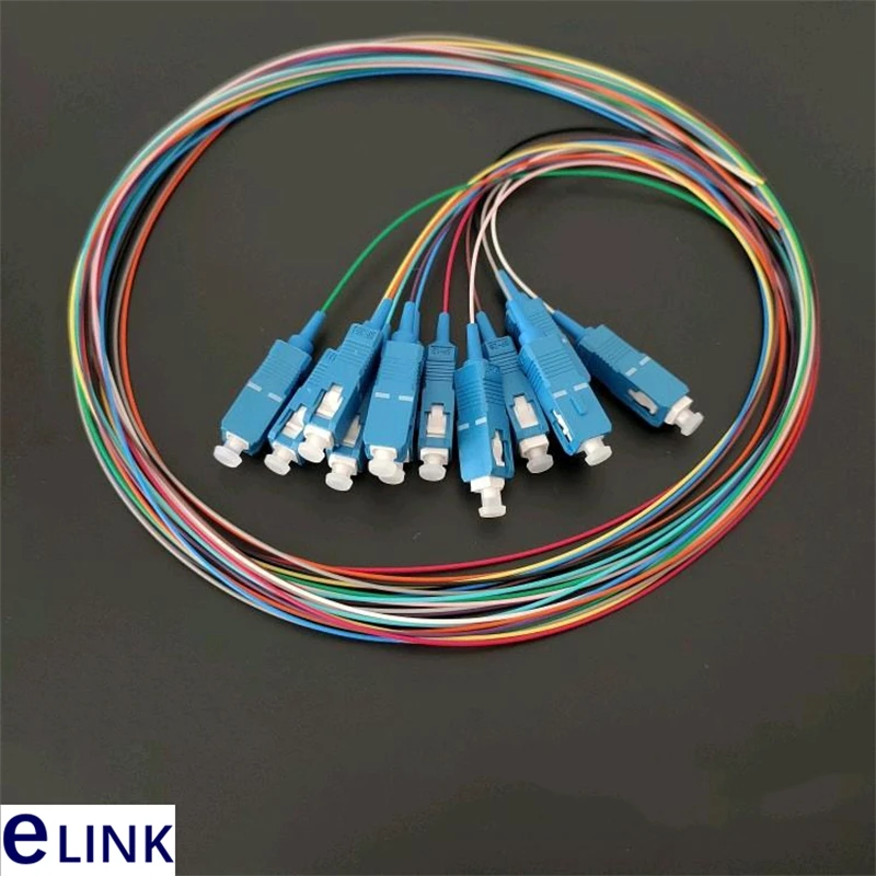 Comprar 12 colores SC pigtail 1M 1,2 M 1,5 mtr SM 9/125um 0,9mm cable de fibra óptica ftth A virola clase suministro de fábrica de alta calidad ELINK