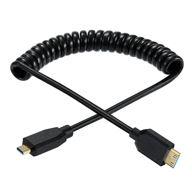 El cable HDMI en espiral Micro a Mini es adecuado para conectar teléfonos inteligentes, cámaras, tabletas y otros dispositivos duros con los conectores correctos.