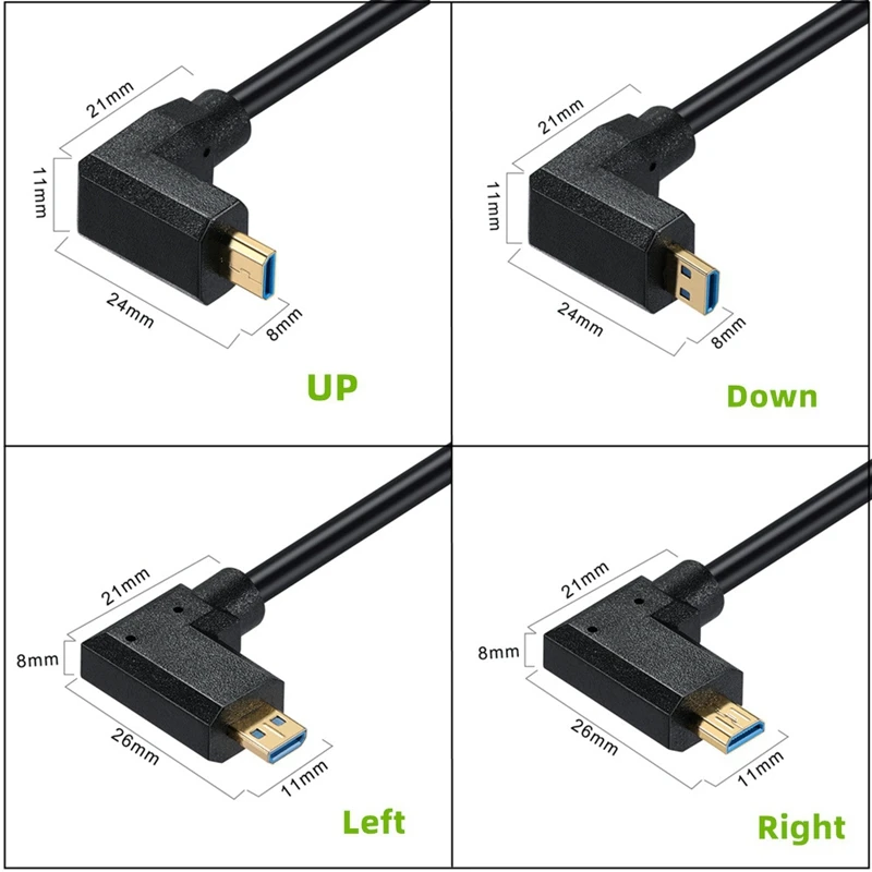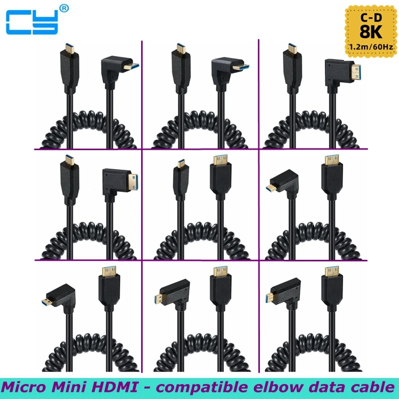 Comprar 1,2 m 2,1 V 8 k @ 60 hz 4 k @ 120 hz Micro HDMI - compatible con Mini HDMI - compatible con C-D Cable en espiral de ángulo de 90 grados Cable flexible