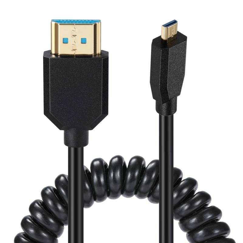 Cable fino retráctil de resorte OD4,0mm, versión 2.1 Micro HDMI compatible con cable compatible con HDMI cámara digital cámara de vídeo cable HD 4K@120Hz 8K@60Hz 1.2 metros;