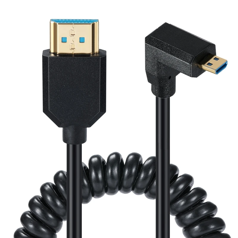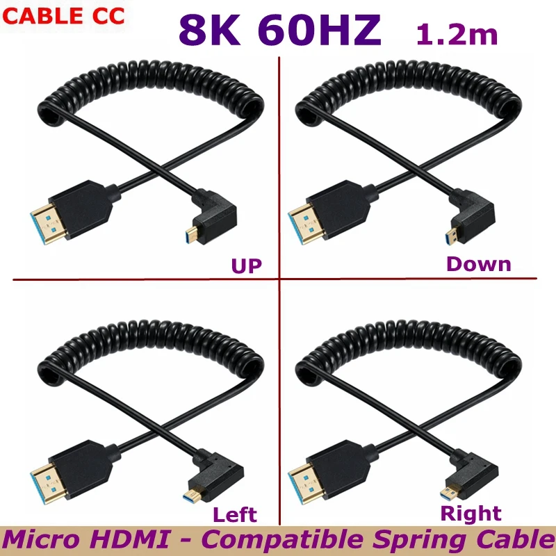 Comprar 1,2 m HD 8k @ 60hz ángulo de 90 grados Micro HDMI Compatible con HDMI Cable en espiral HDTV-2.1 para ordenador TV cámara Digital