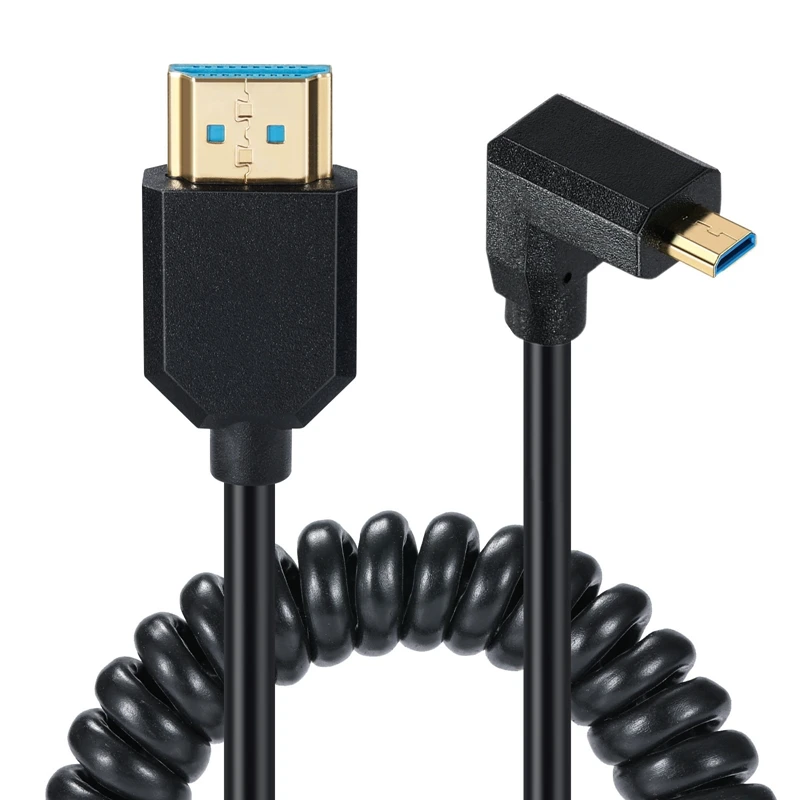 Comprar 1,2 m HD 8k @ 60hz ángulo de 90 grados Micro HDMI Compatible con HDMI Cable en espiral HDTV-2.1 para ordenador TV cámara Digital