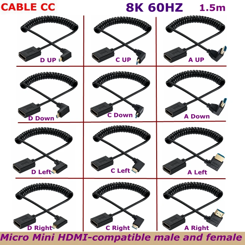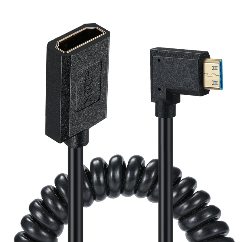 Comprar 1,2 m HD ángulo de 90 grados 8K60Hz Micro/Mini HDMI Compatible macho a HDMI hembra Cable de cámara Digital retráctil de resorte