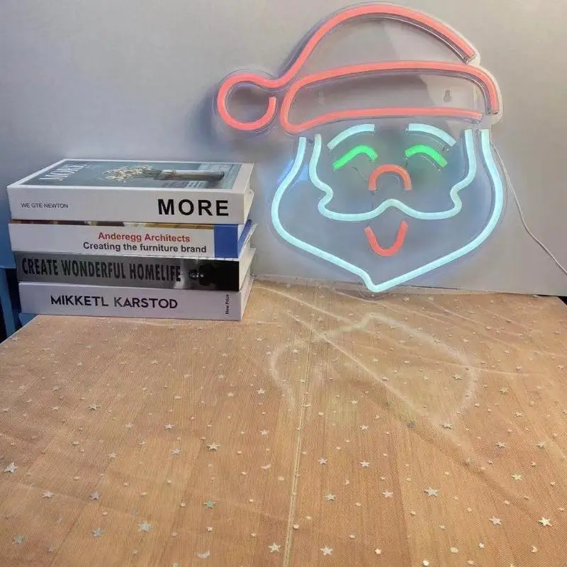 La exclusiva luz de neón acrílica de Papá Noel puede iluminar y cambiar el espacio circundante.