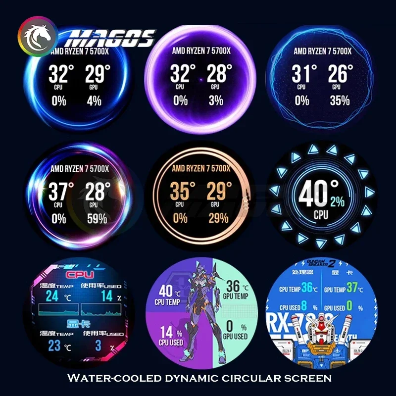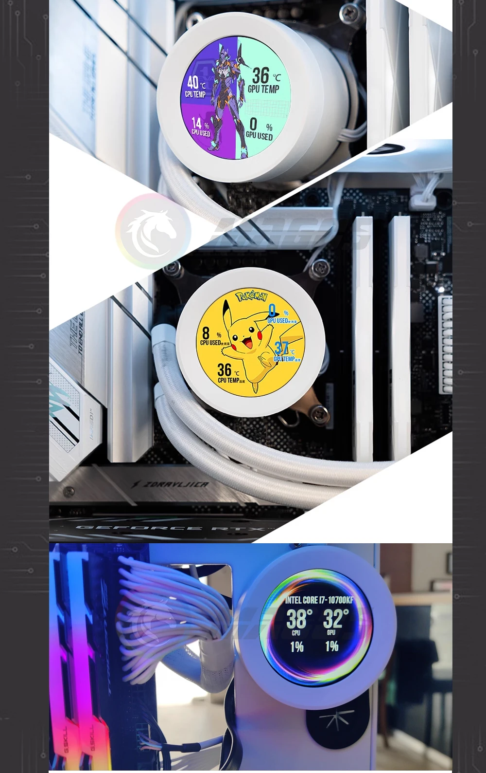 Comprar 120 240 360 CPU AIO Monitor de refrigeración pantalla redonda IPS 2,1 pulgadas temperatura en tiempo Real.+GIF+Video temas de Anime AIDA 64 Control CPU MOD