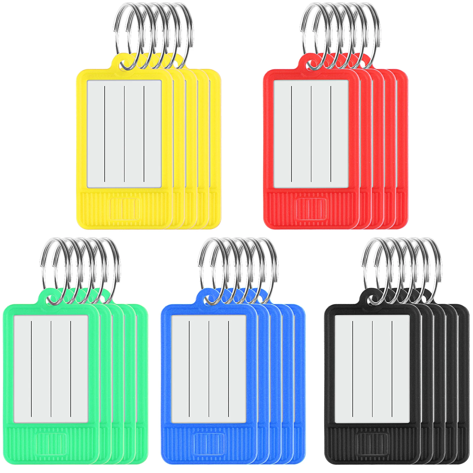 【Paquete de superprecio】hay 24 etiquetas plásticas para llaves con anillo en cinco colores en este paquete, negro, rojo, amarillo, verde y azul, los colores hermosos y brillantes y las etiquetas en blanco son muy adecuadas para identificar diferentes llaves de diferentes cerraduras, lo que puede satisfacer sus diferentes demandas de uso. 【Práctico y ligero】 estas etiquetas de plástico para llaves están compuestas principalmente de polipropileno resistente y anillo de acero inoxidable, que es resistente y puede proteger su etiqueta de papel; Su volumen es de 1,89x1,06 pulgadas,. Y es ligero, muy adecuado para llevar o usar a diario. 【Operación simple 】 cada etiqueta de llave grabable tiene un anillo y una cubierta de plástico transparente para evitar que la etiqueta se caiga y se dañe; Primero, debe quitar el anillo de acero inoxidable, luego puede dibujar la etiqueta en blanco para escribir y, finalmente, deslizarla hacia atrás, Muy práctico y fácil de usar. 【Función de clasificación】estas etiquetas para llaves con etiquetas de papel son muy adecuadas para clasificar llaveros, maletas, unidades flash, taquillas, cajas de comida, mochilas y otros artículos personales para mantenerlos en orden, para que puedas encontrar tus propios artículos de un vistazo. 【Amplia gama de uso】 estas etiquetas clave son adecuadas para escuelas, centros comerciales, empresas, hoteles, casas y otros lugares y se pueden aplicar como etiqueta de llave, etiqueta de equipaje, etiqueta de nombre, etiqueta de armario, etiqueta de Mascota, etiqueta de precio, etc., que tiene una amplia gama de aplicaciones.