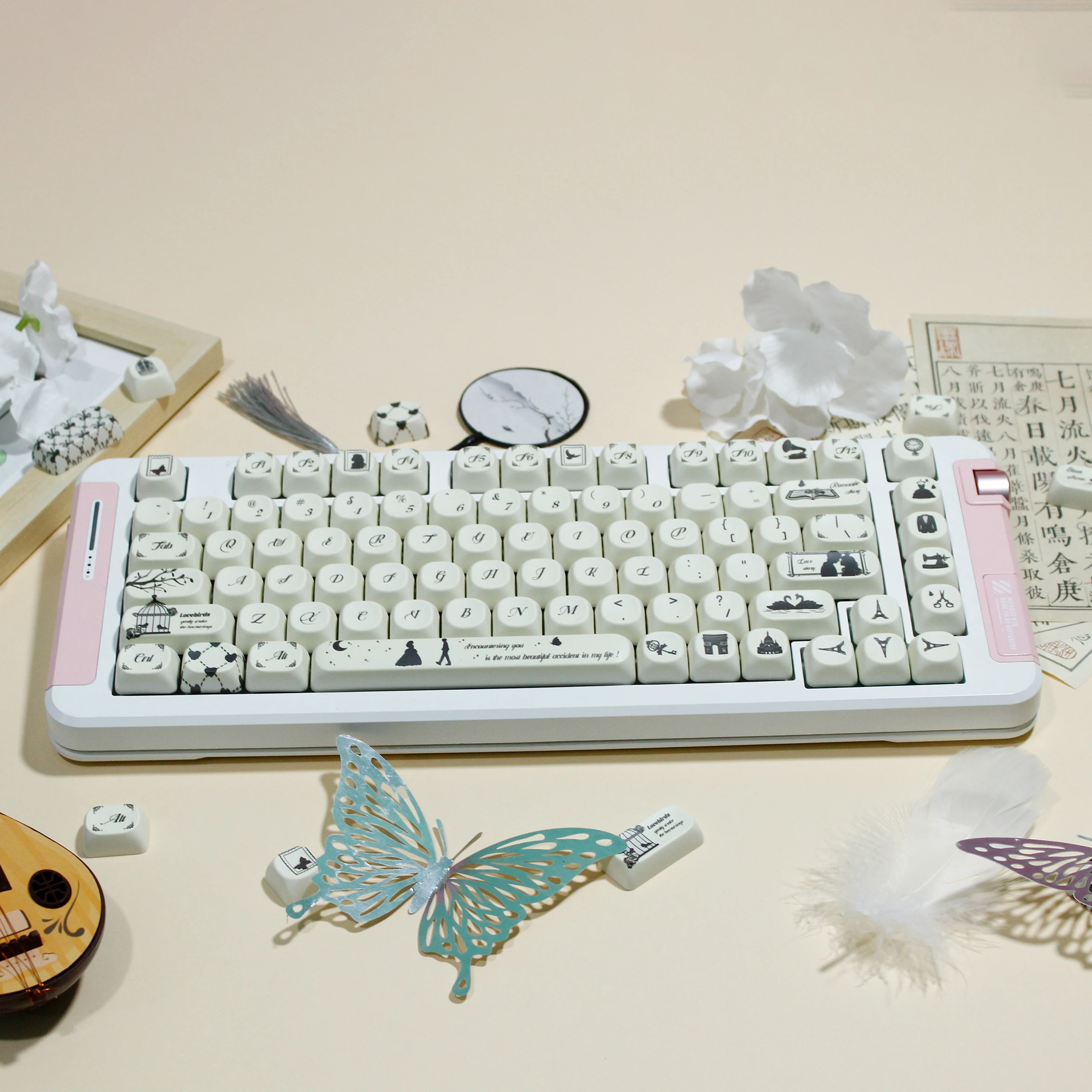 Comprar 120 teclas contorneadas por teclas, bonito tema, tecla de juego Moa, Anime PBT DYE SUB Cherry MX Switch para teclado mecánico
