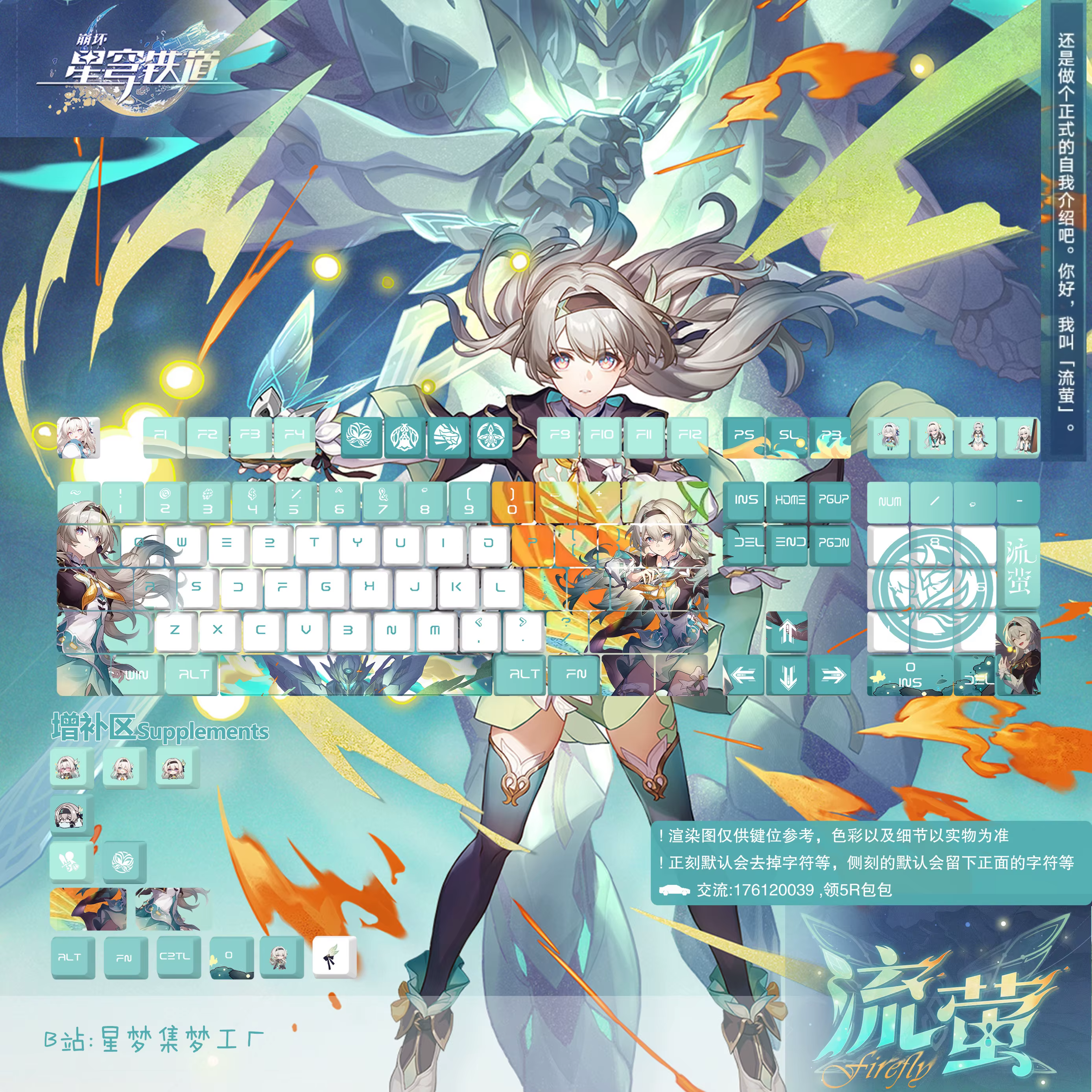 Comprar 120 teclas Honkai: teclas Star Rail Firefly, teclas PBT, juegos de Anime, teclas translúcidas, perfil de cereza para teclados mecánicos