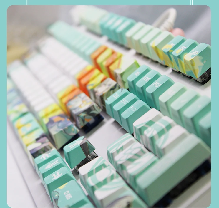 Material: PBT (superficie seca, textura clara, resistente a la corrosión, resistente al desgaste, no grasa, puede mantener las mejores condiciones durante mucho tiempo)