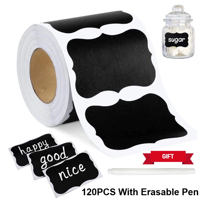 Comprar 120 uds/rollo de pegatinas de pizarra, marcador de bolígrafo blanco, pizarra impermeable, etiqueta adhesiva de especias para cocina, tarros para el hogar, etiquetas para botellas