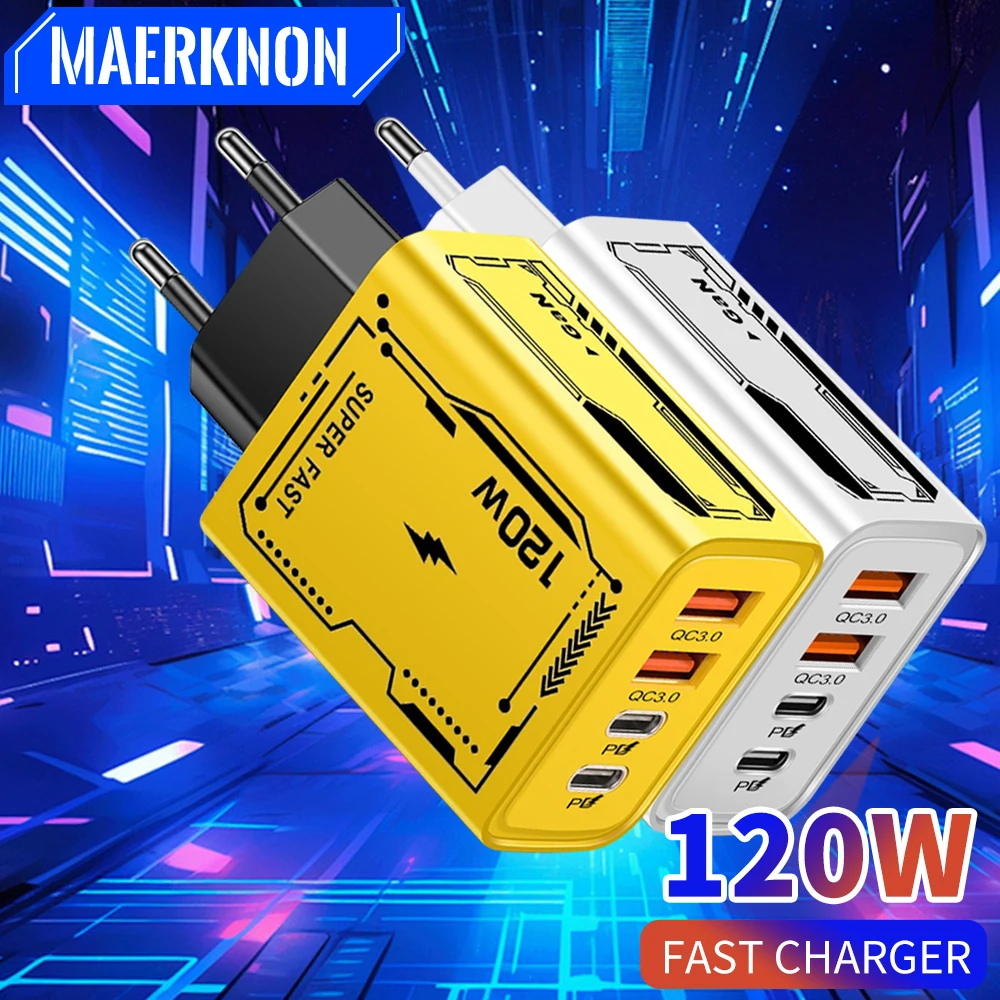 Comprar 120W 4 puertos carga súper rápida PD tipo C QC3.0 cargador de enchufe EE. UU./UE para iPhone 15 14 13 12 11 Huawei Samsung Xiaomi