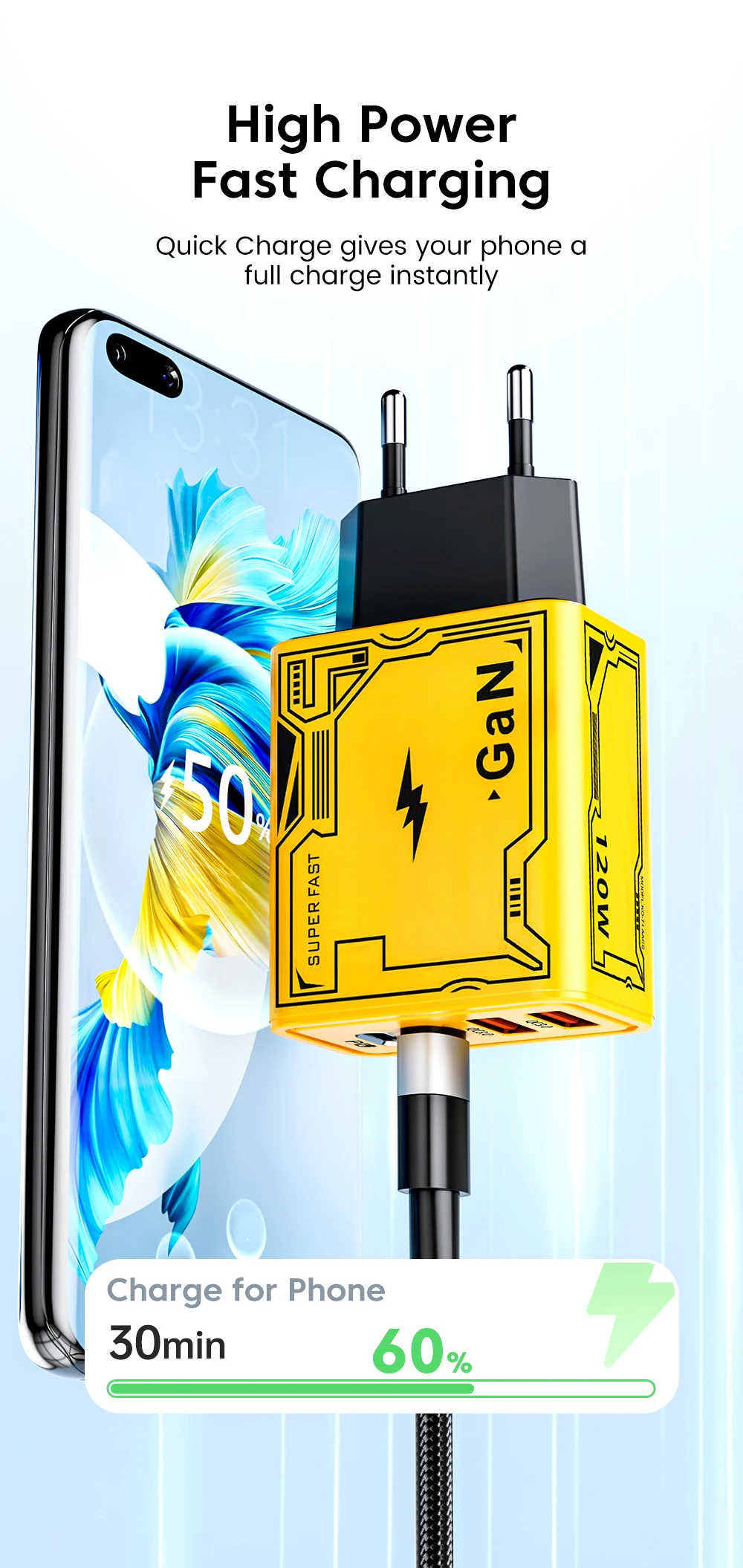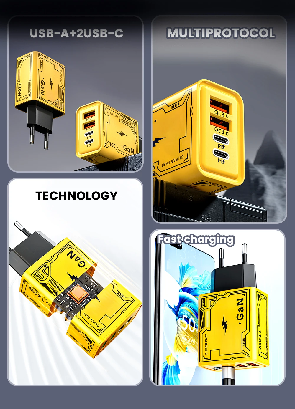 No carga a 120 W, débil, no vale la pena comprarlo.