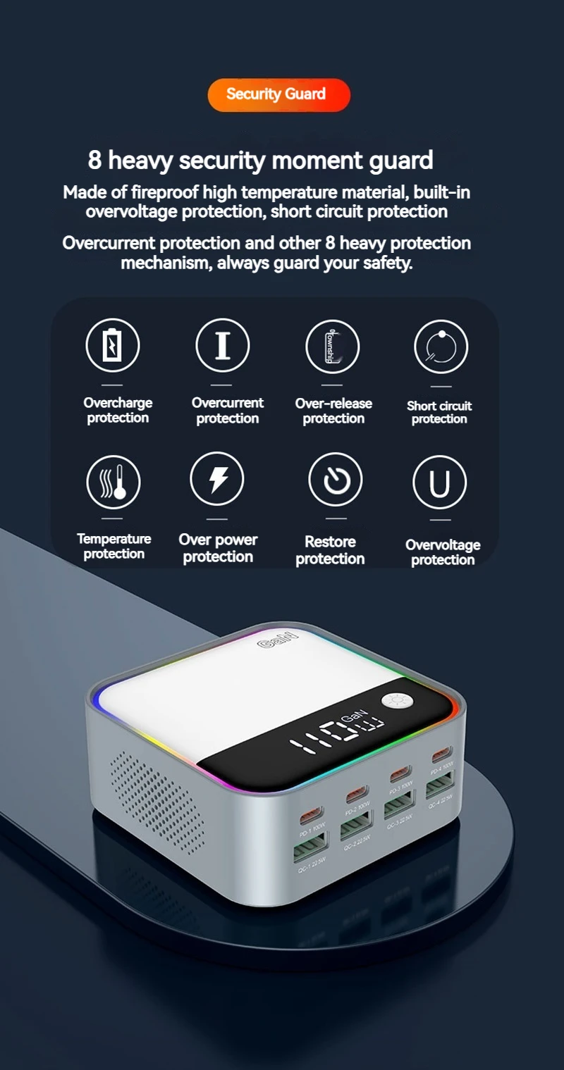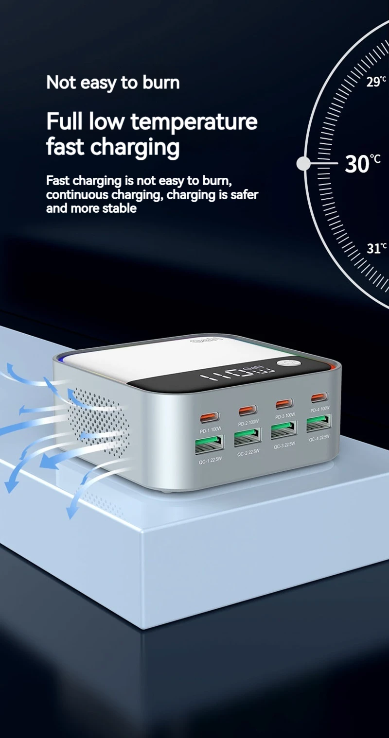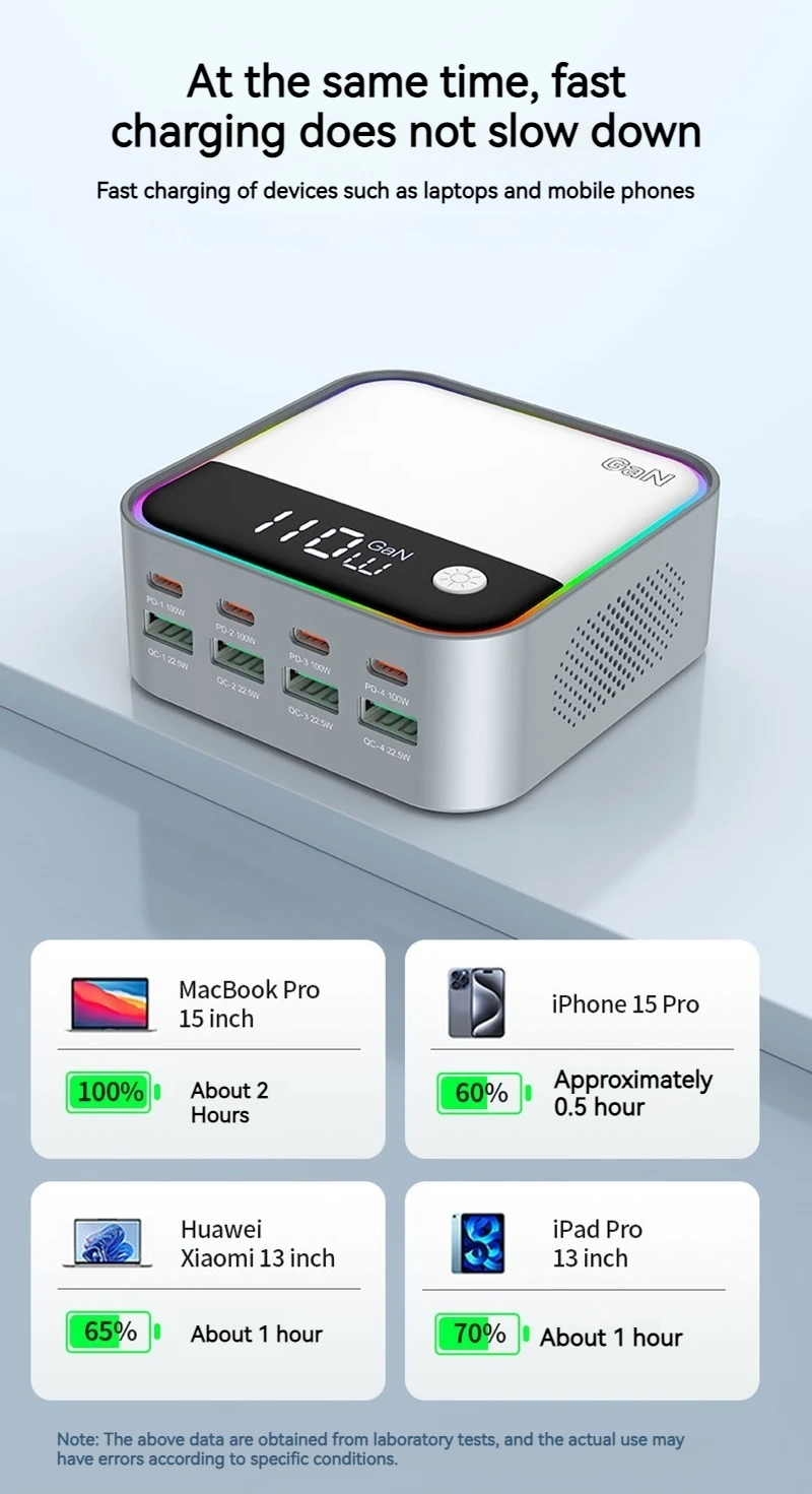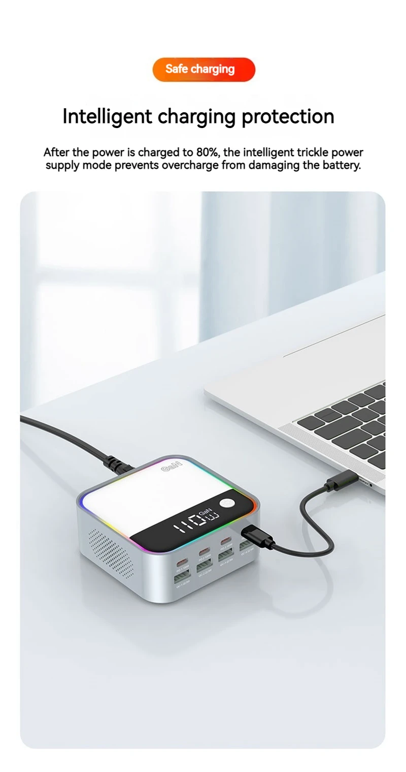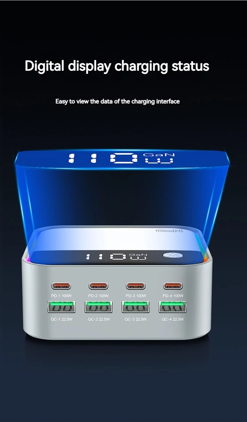 120W Universal 8 puertos Multi USB tipo C QC3.0 GaN cargador PD 100W Estación de carga rápida para Macbook Iphone 16 15 14 Pro Samsung