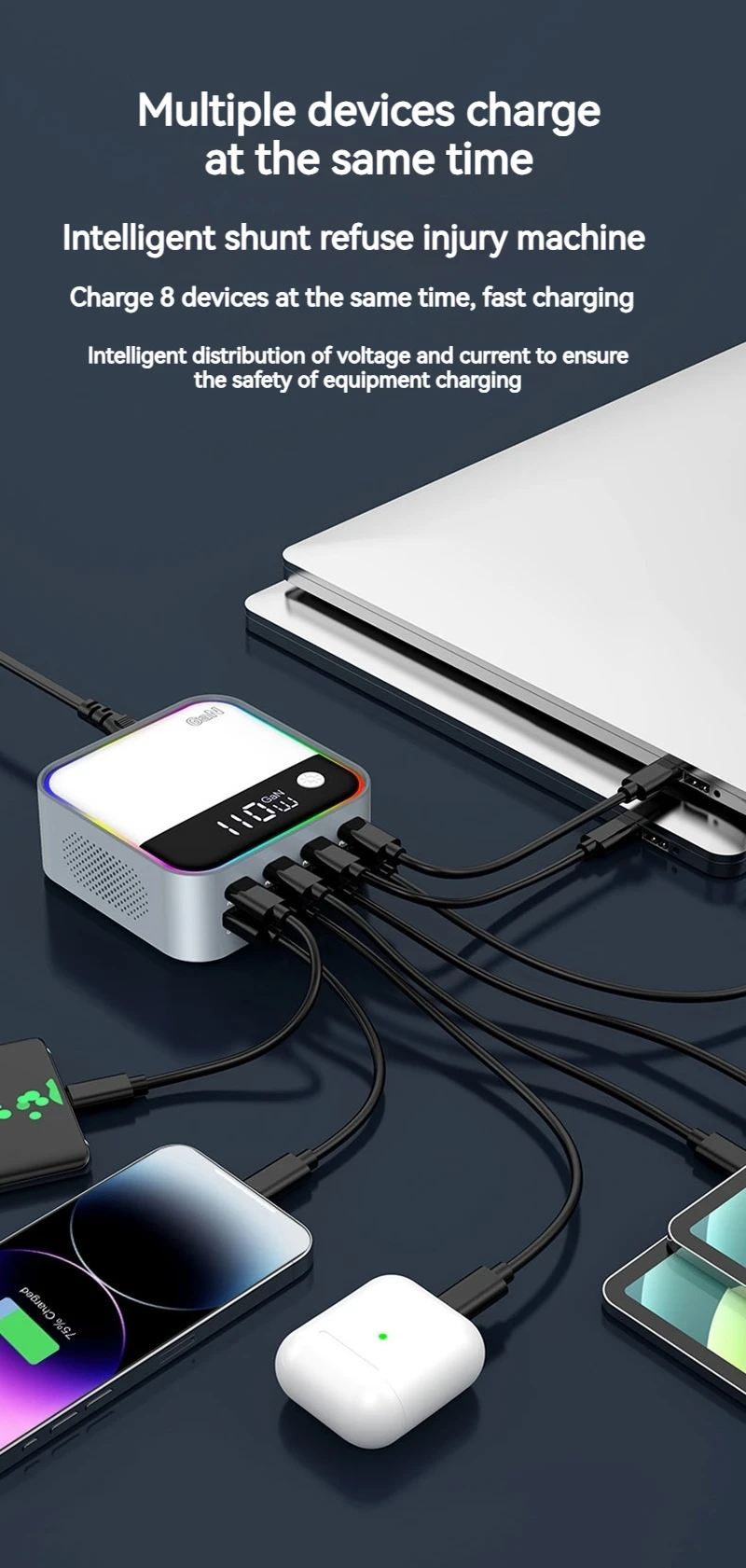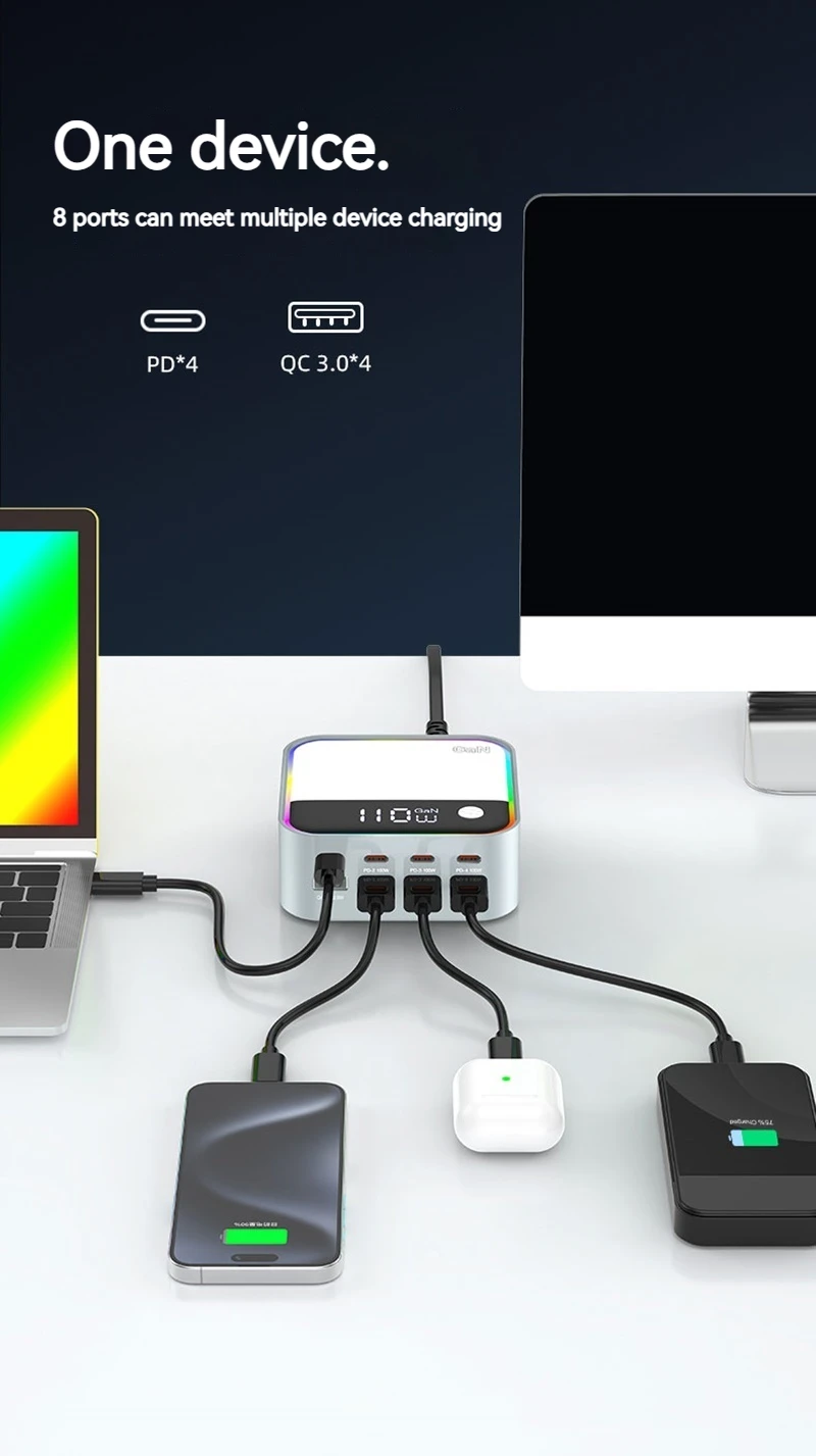 120W Universal 8 puertos Multi USB tipo C QC3.0 GaN cargador PD 100W estación de carga rápida para Macbook Iphone 16 15 14 Pro Samsung
