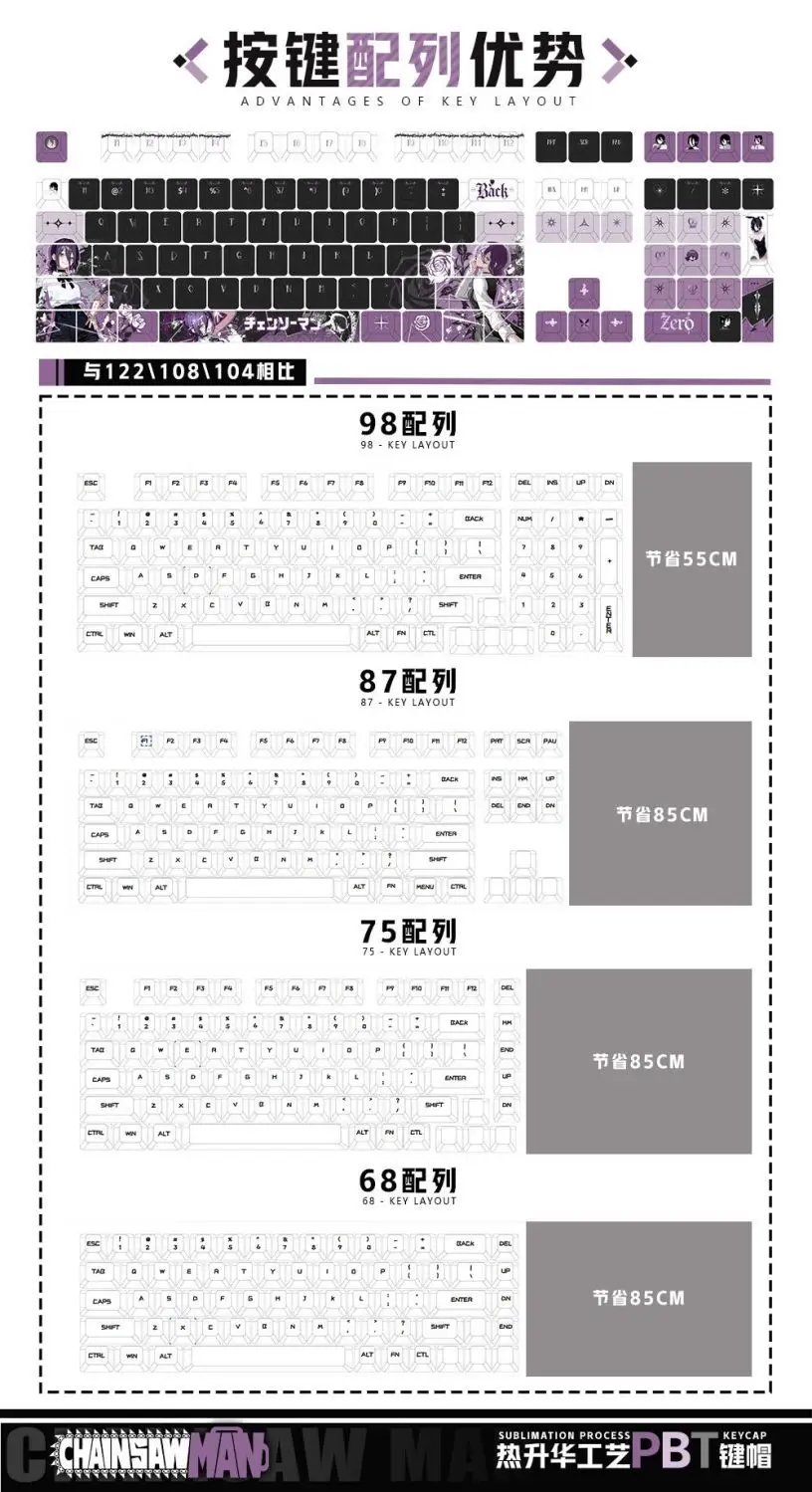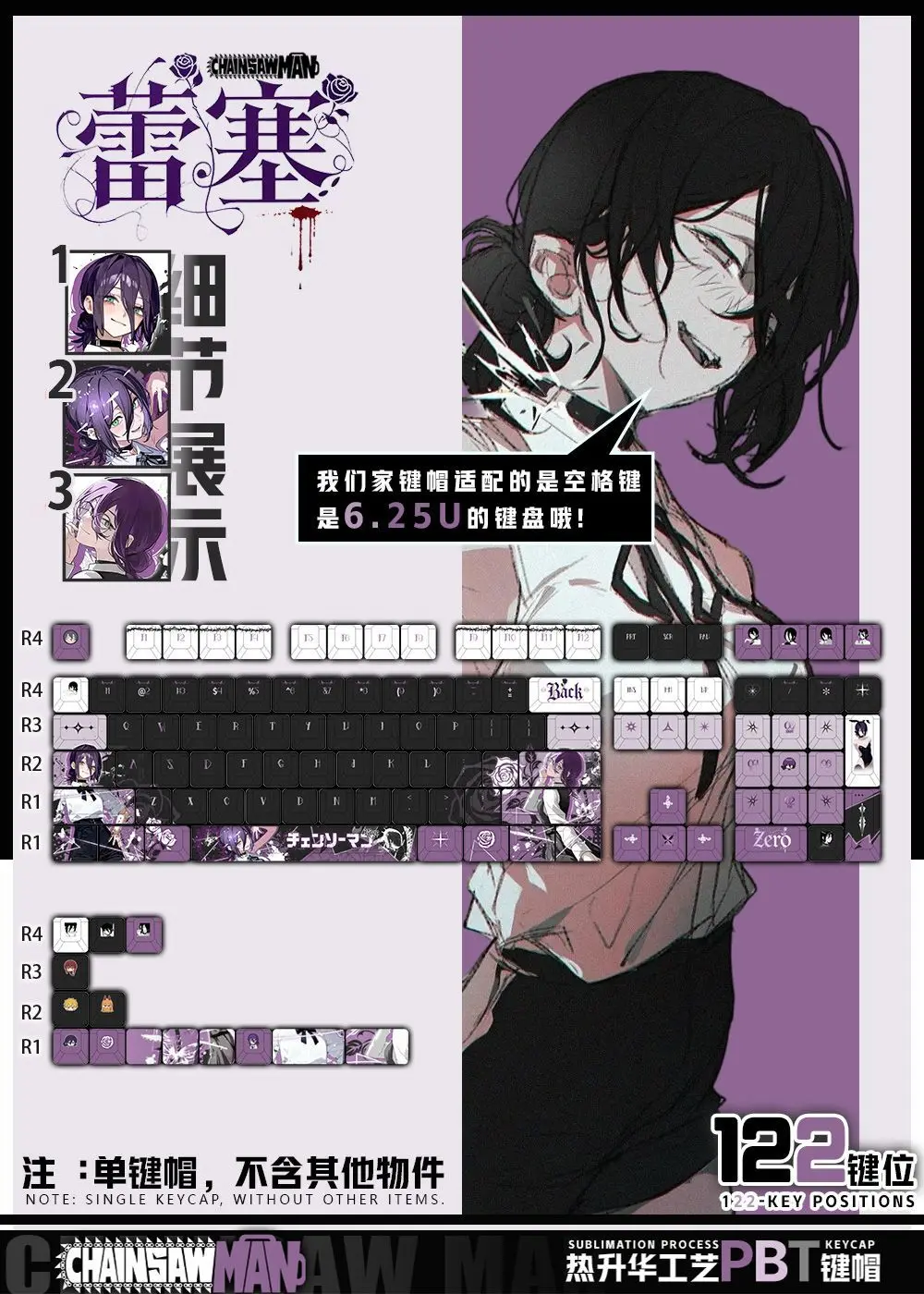 Comprar 122 teclas Reze Keycaps motosierra hombre tema Anime PBT Dye-sub teclado teclas Cherry perfil Japón tapa de tecla para teclado mecánico