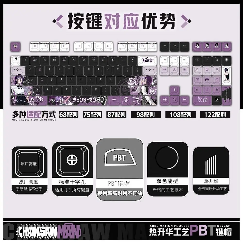 Comprar 122 teclas Reze Keycaps motosierra hombre tema Anime PBT Dye-sub teclado teclas Cherry perfil Japón tapa de tecla para teclado mecánico