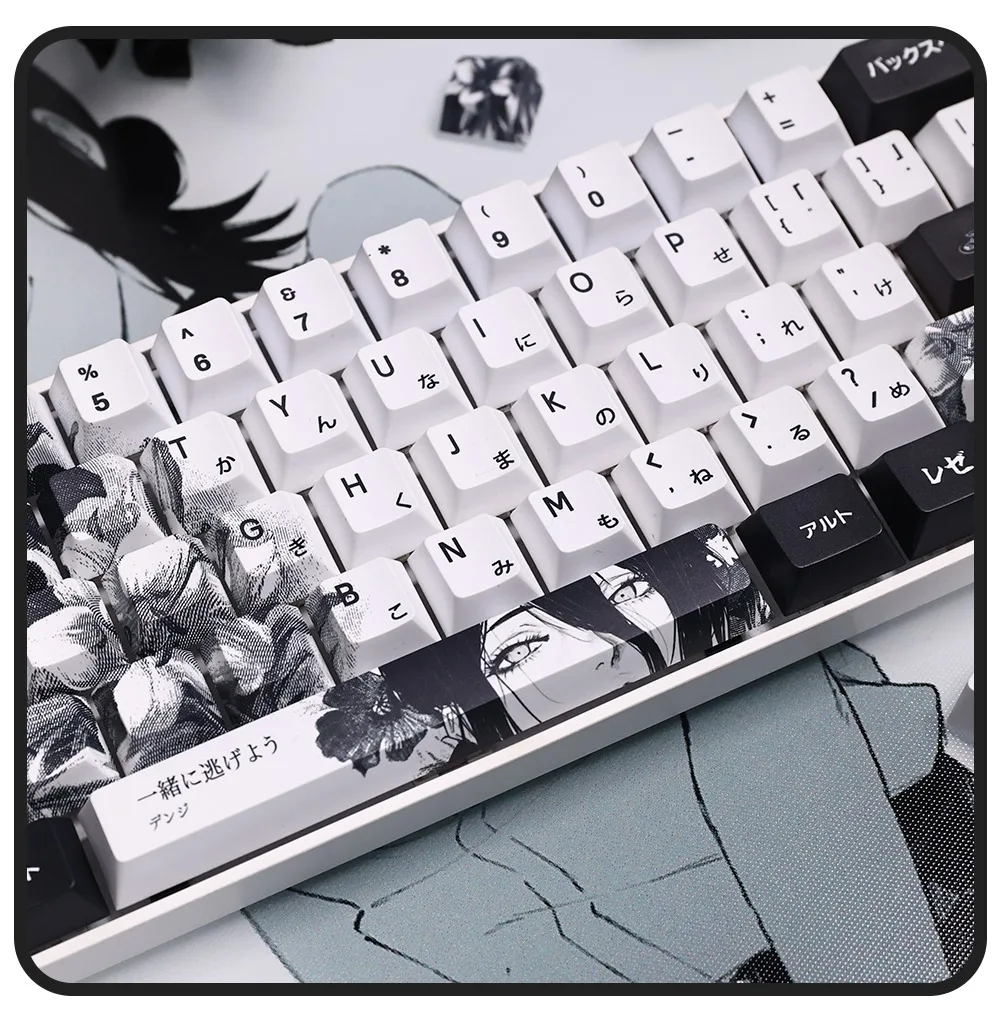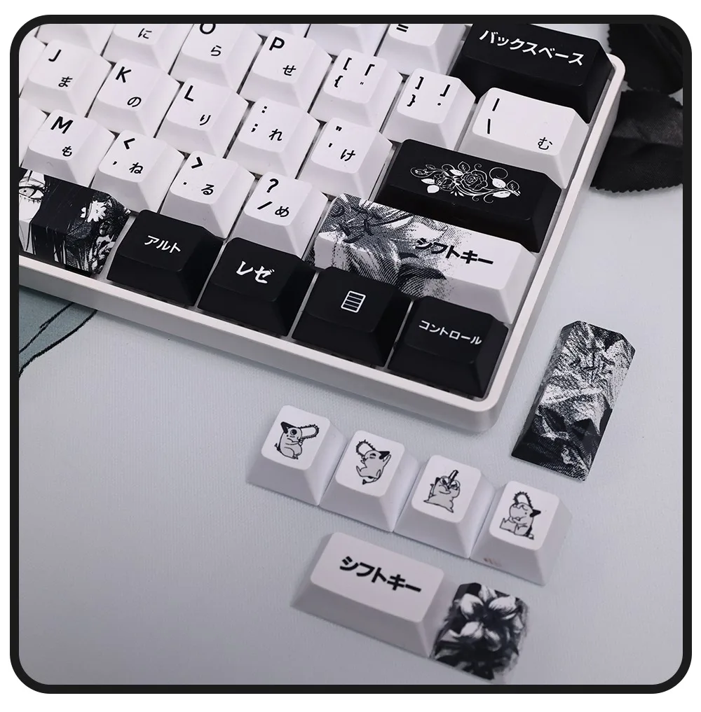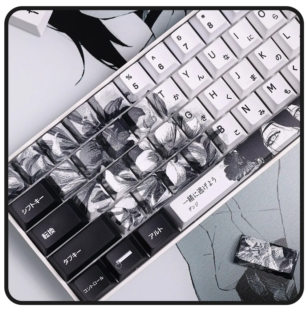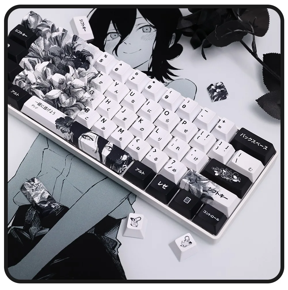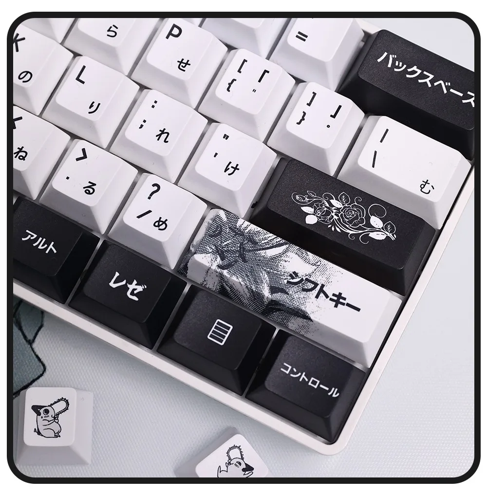 Comprar 124 teclas, teclas japonesas de Anime blanco y negro, sublimación PBT, perfil de cereza, accesorios para teclado mecánico personalizados