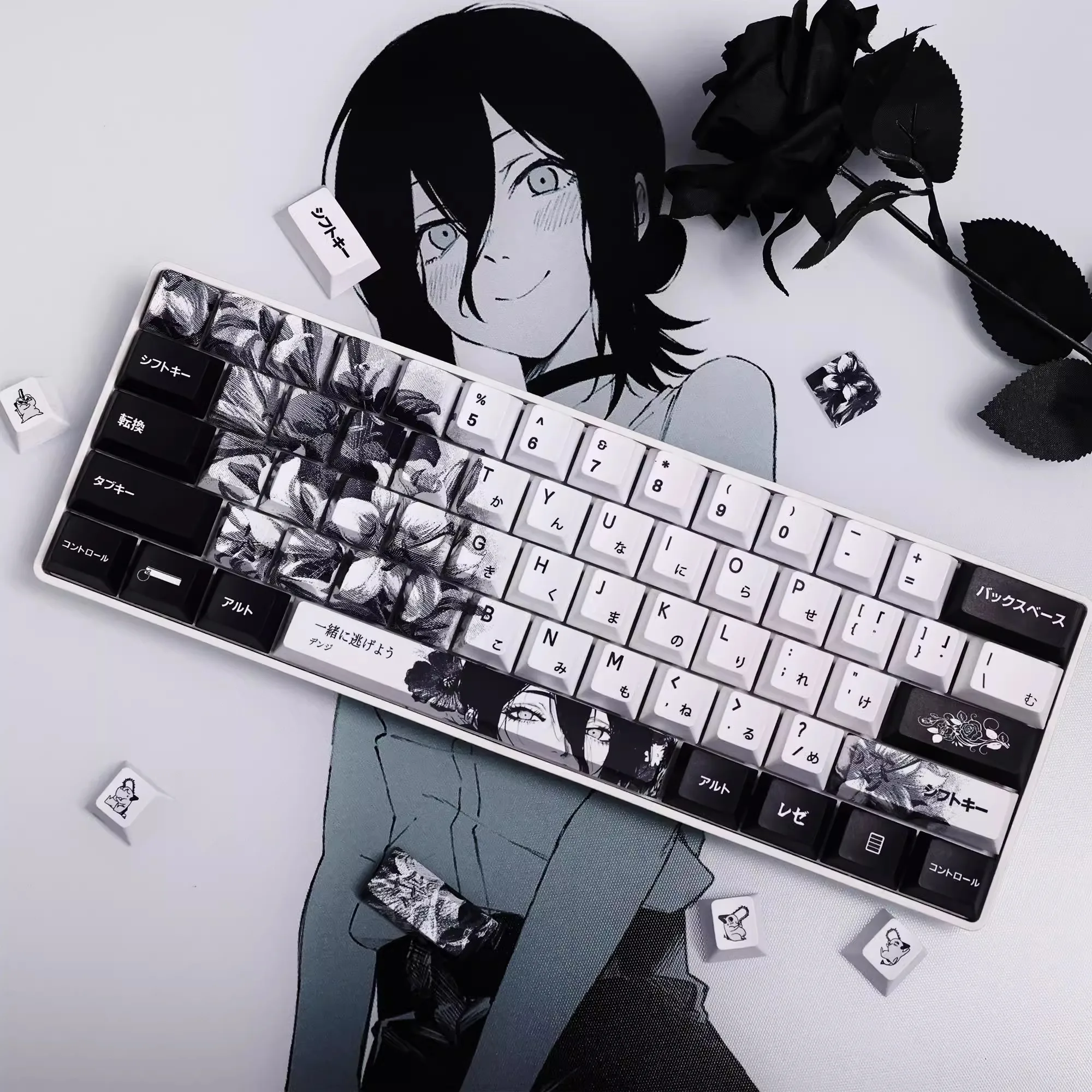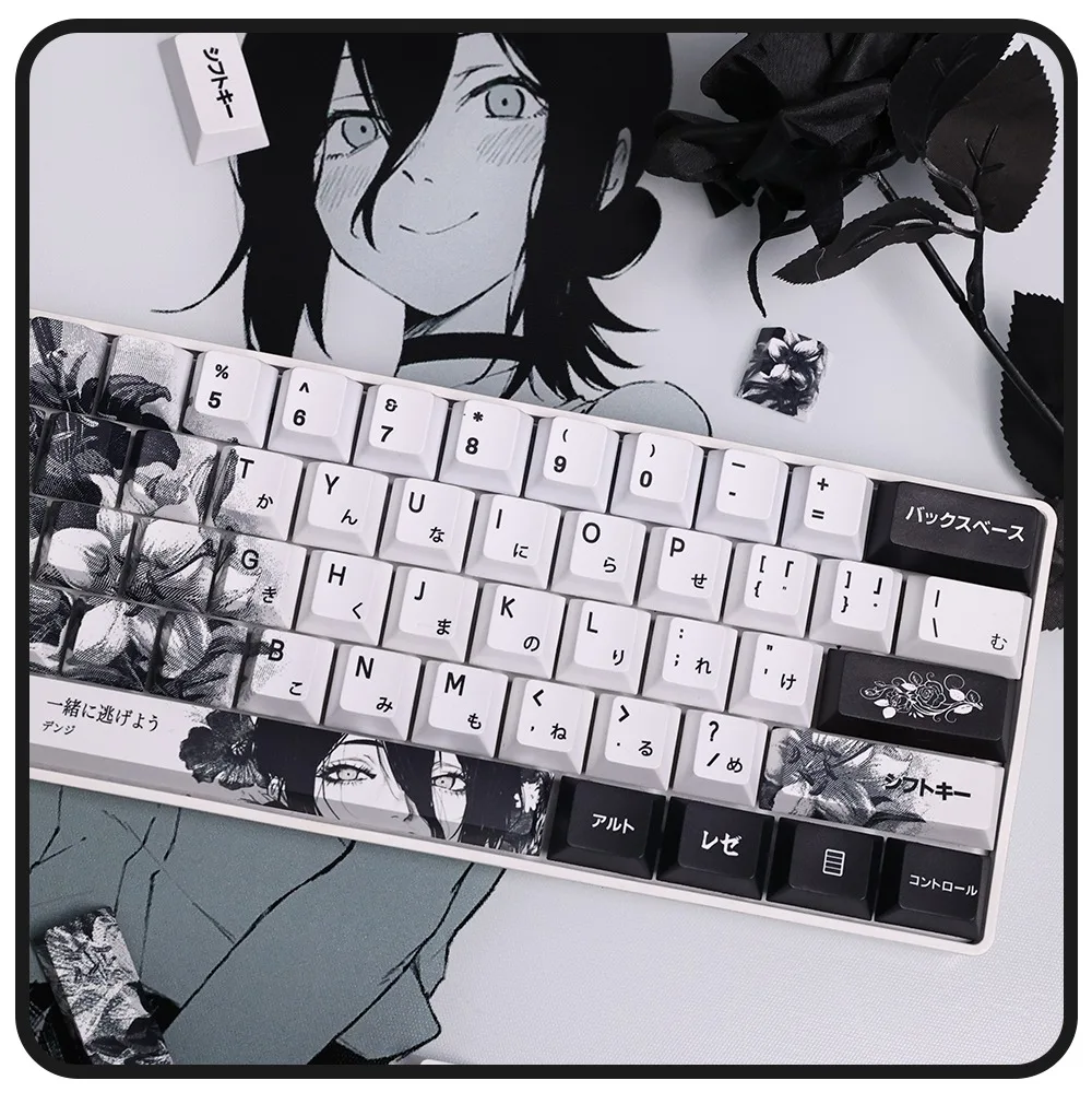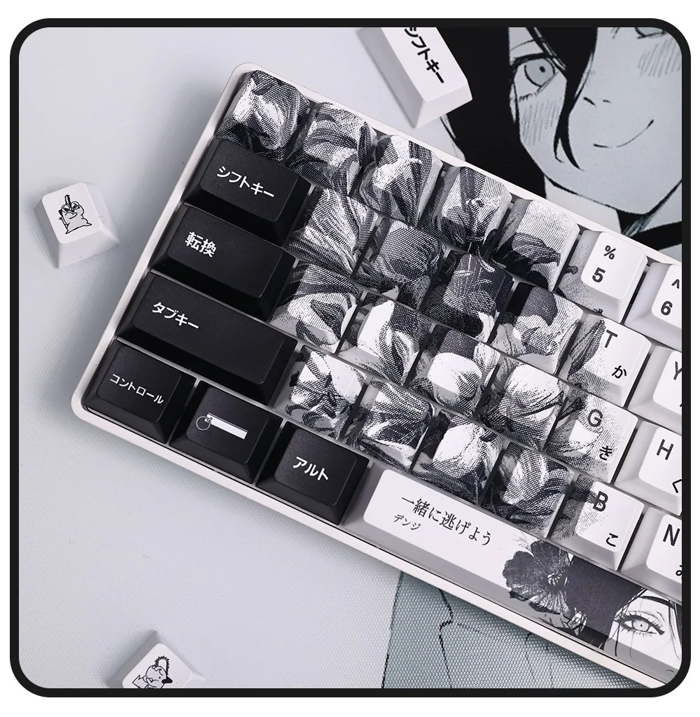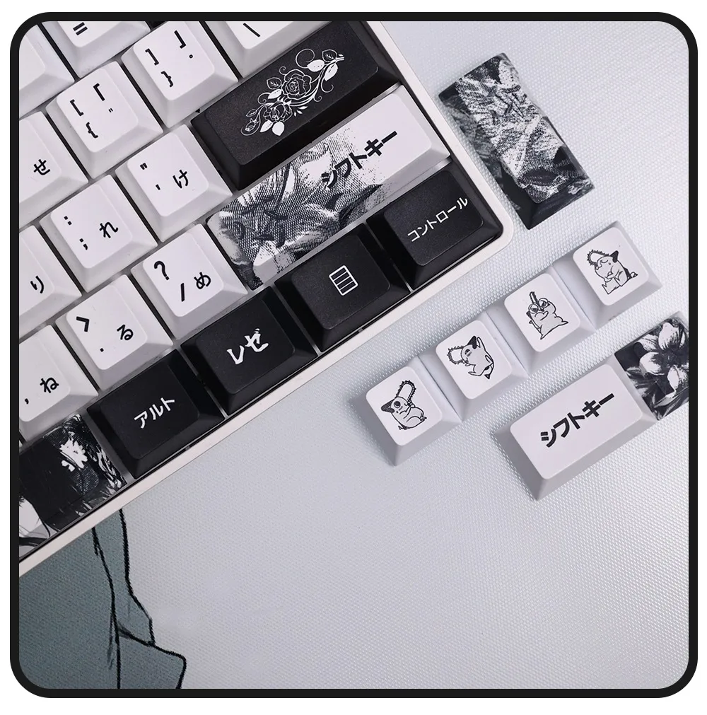 Comprar 124 teclas, teclas japonesas de Anime blanco y negro, sublimación PBT, perfil de cereza, accesorios para teclado mecánico personalizados