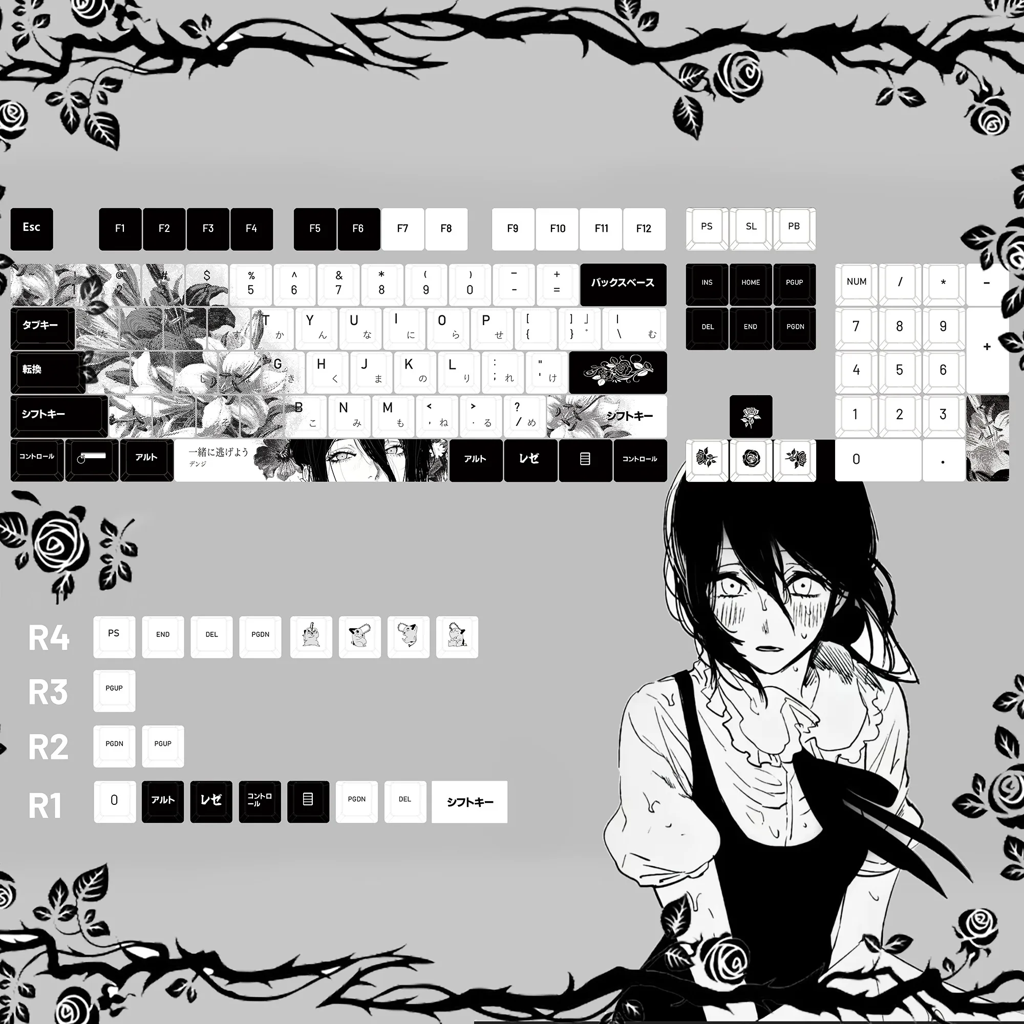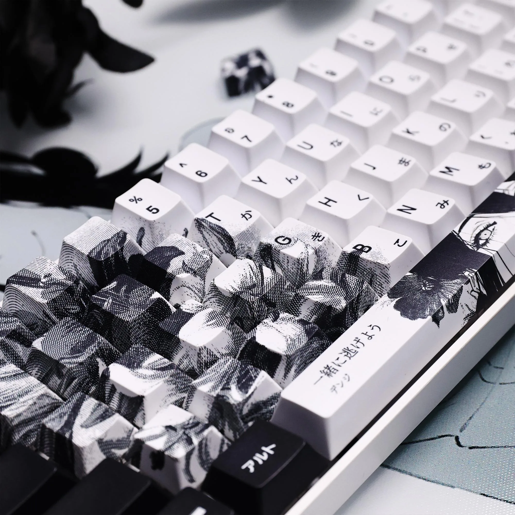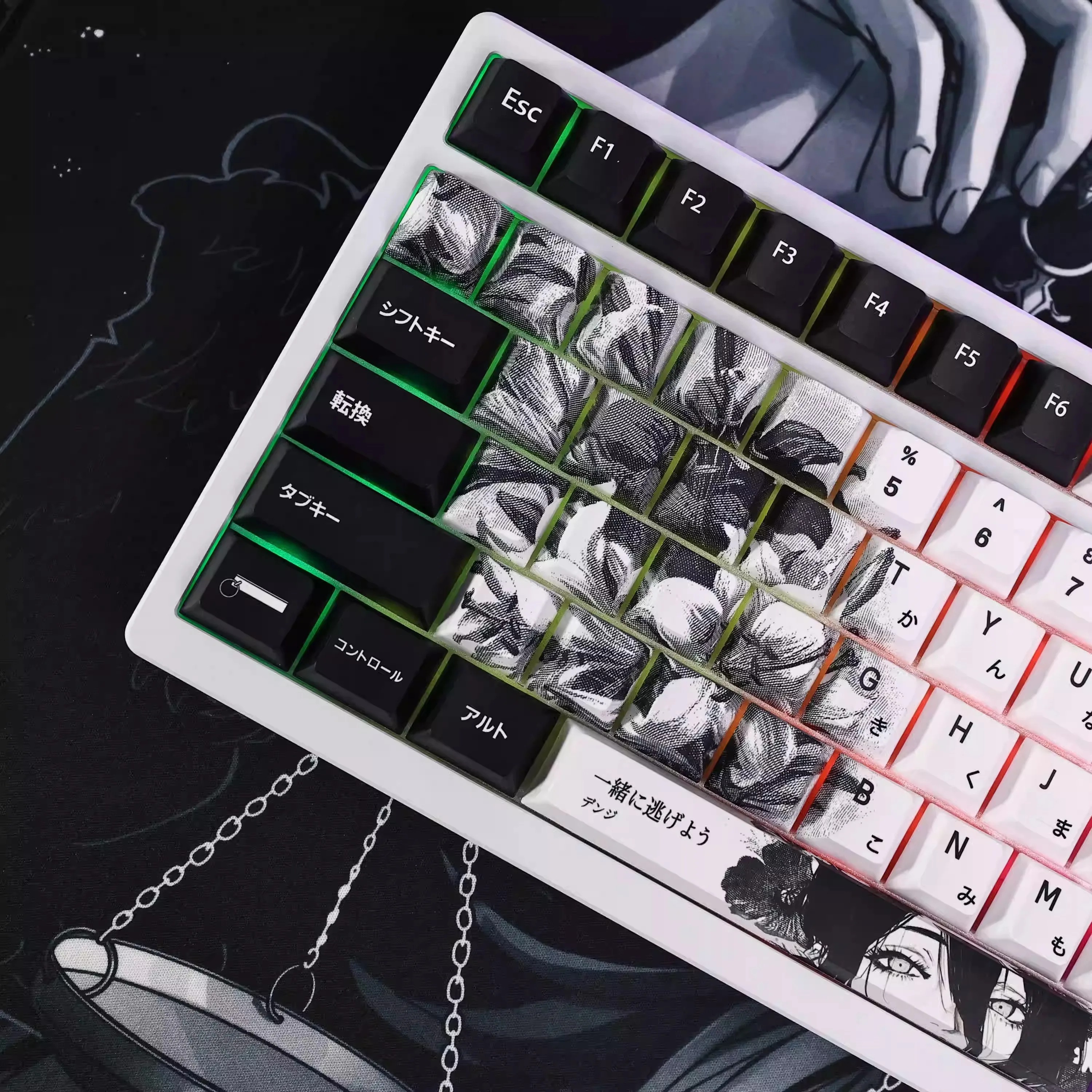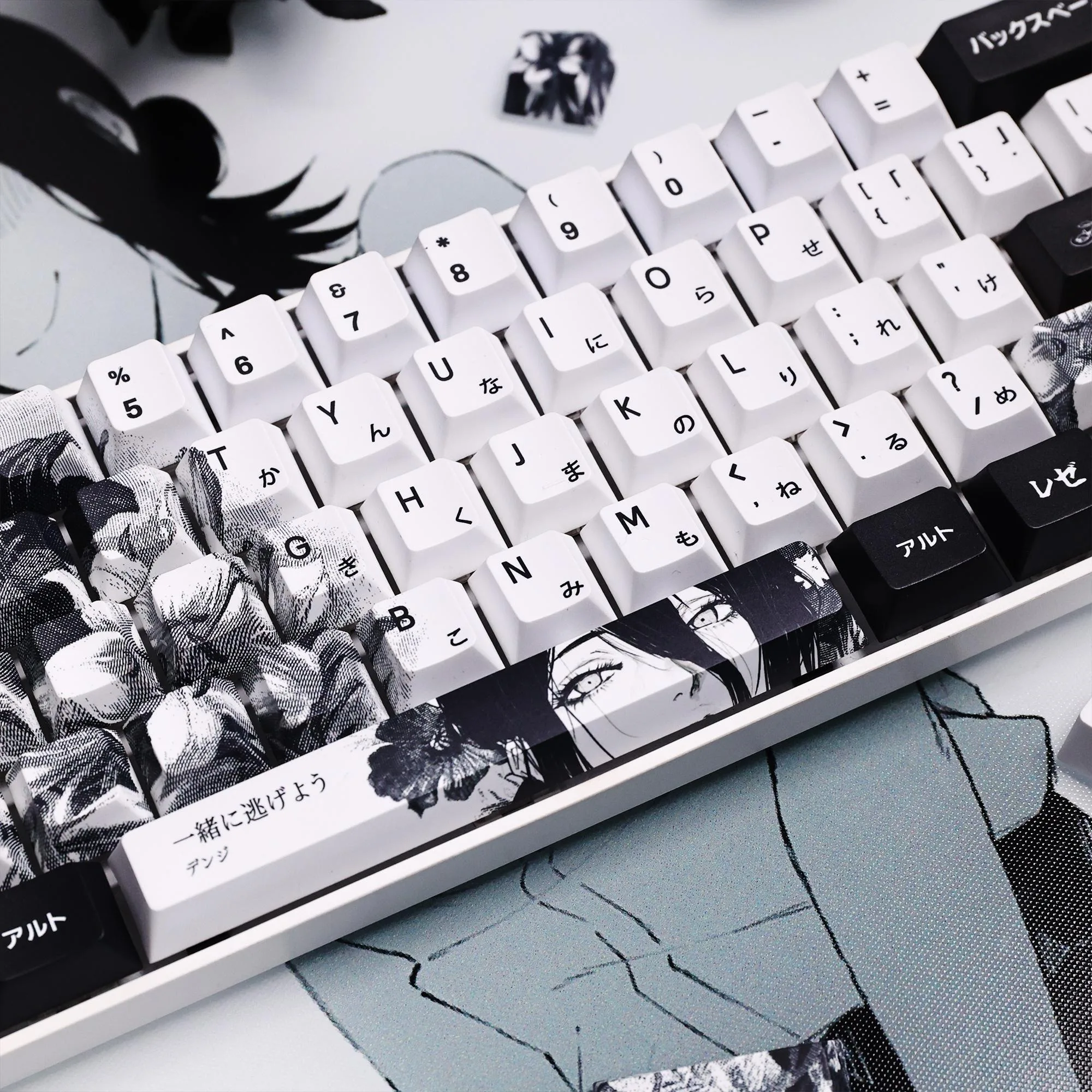 Comprar 124 teclas, teclas japonesas de Anime blanco y negro, sublimación PBT, perfil de cereza, accesorios para teclado mecánico personalizados