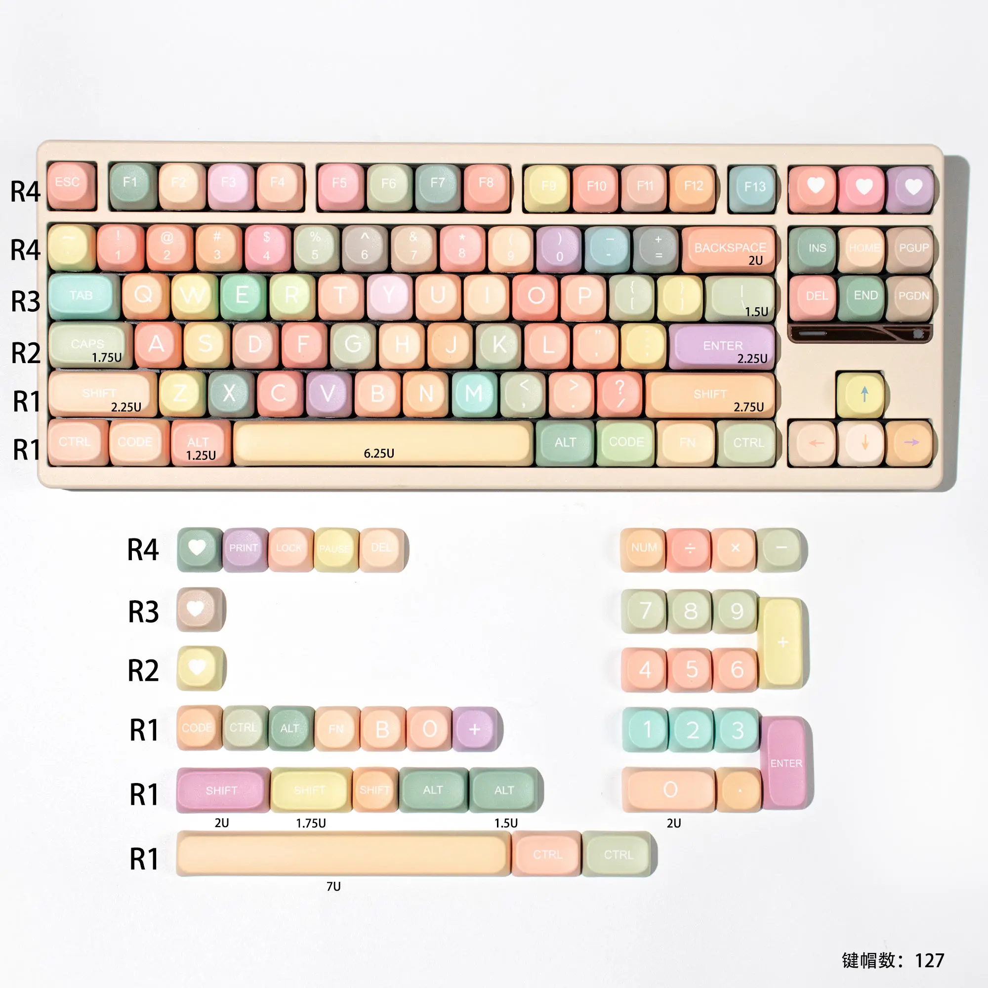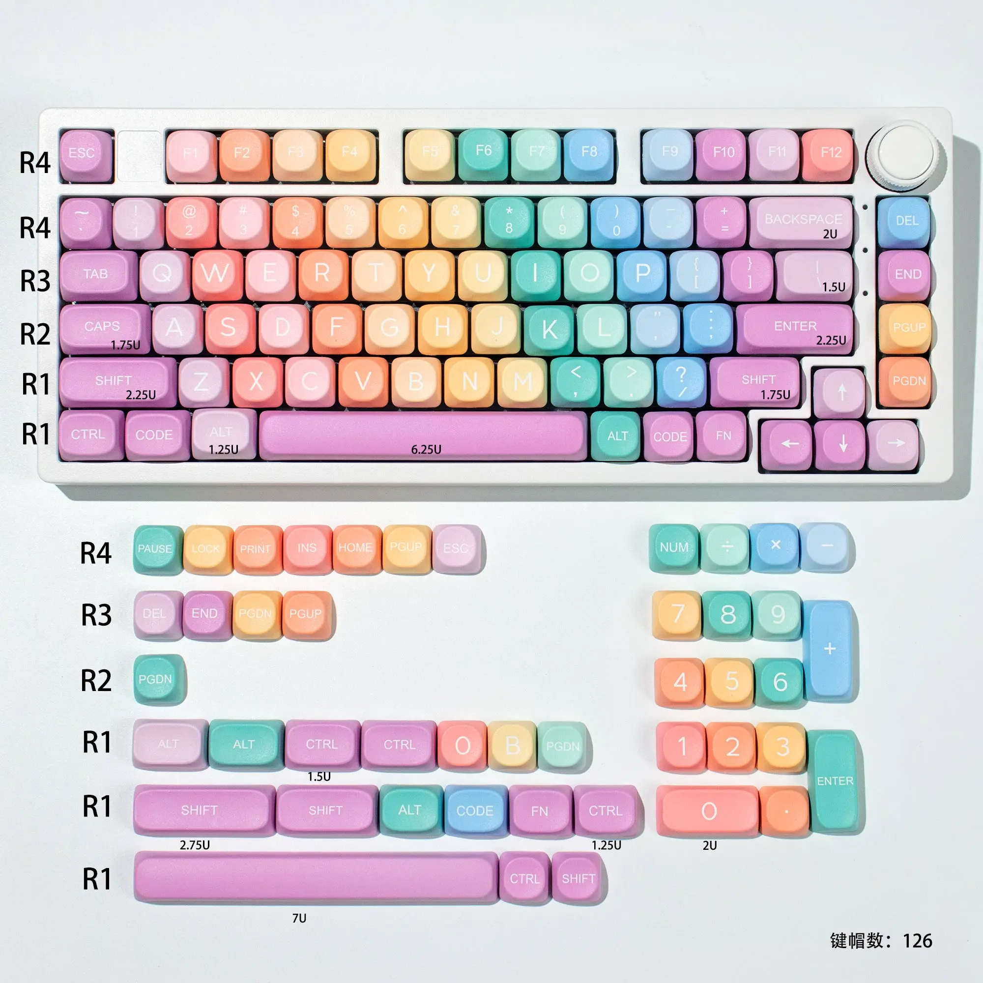 Comprar 126 teclas, teclas Rainbow MOA, teclas PBT, teclas de sublimación de tinte, bonitas teclas coloridas personalizadas de caramelo para teclados mecánicos