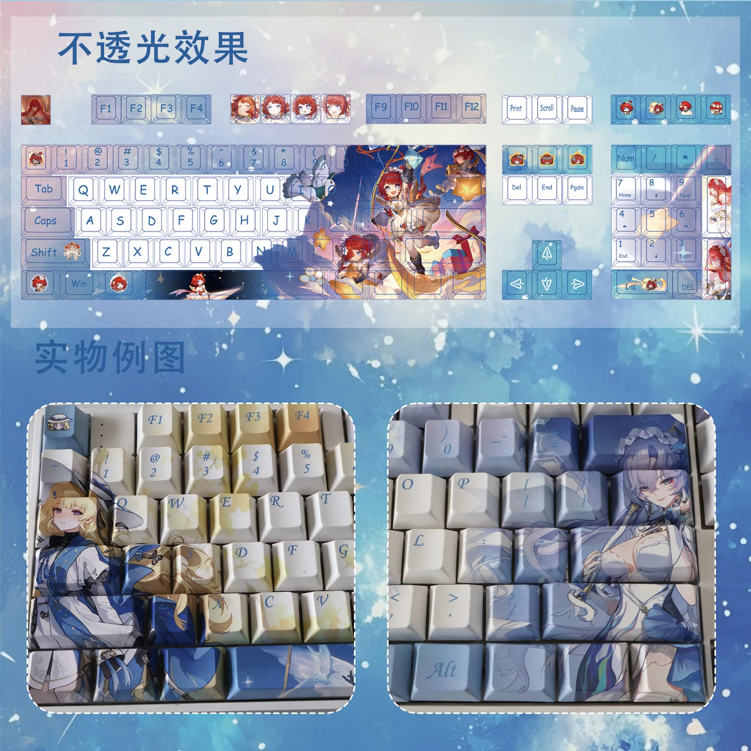 Material: PBT (superficie seca, textura clara, resistente a la corrosión, resistente al desgaste, no grasa, puede mantener las mejores condiciones durante mucho tiempo)