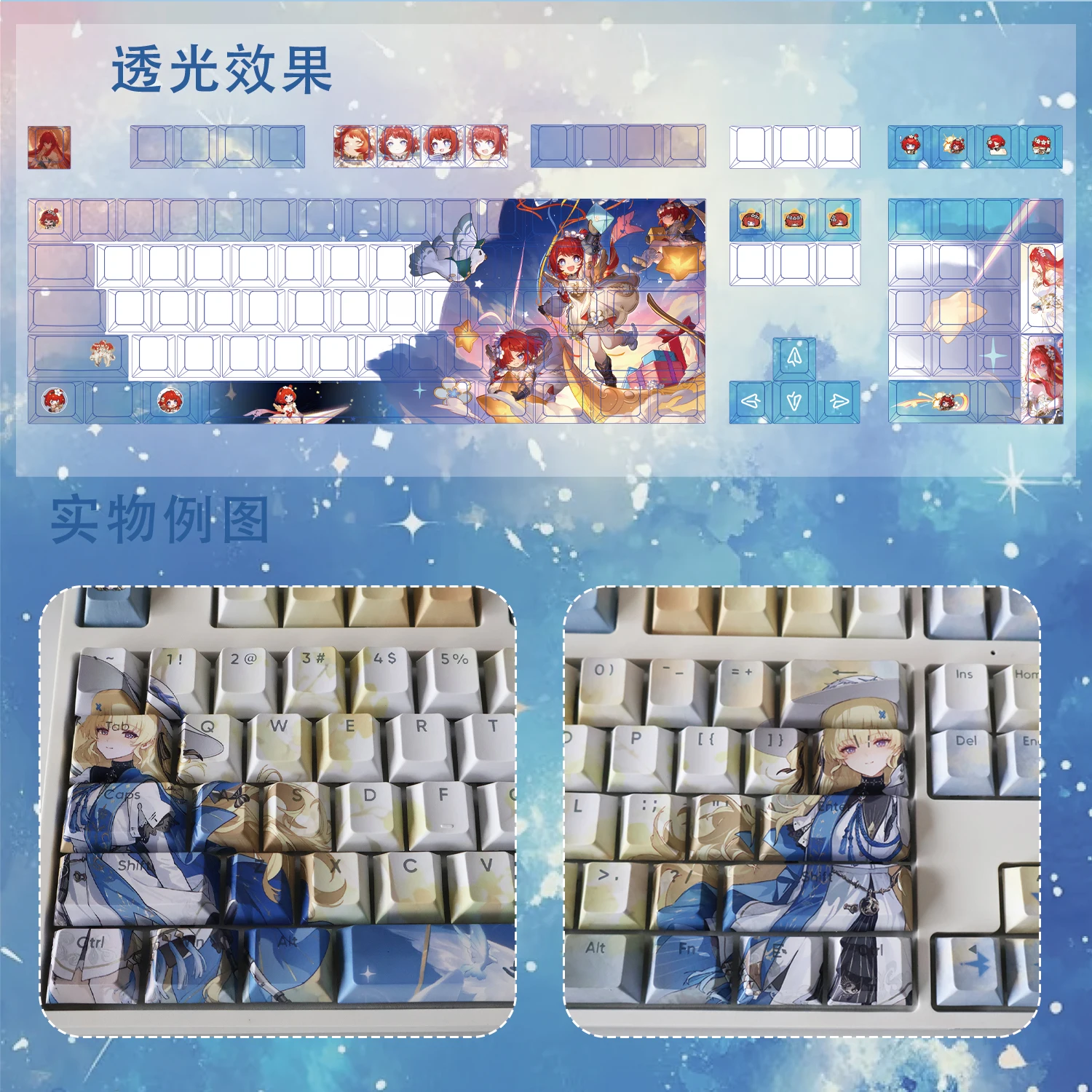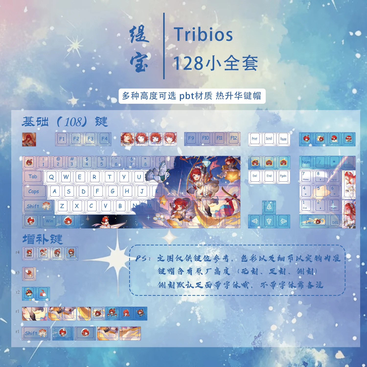 Comprar 128 teclas Honkai Star Rail Tribbie teclas PBT Dye-Sub retroiluminadas teclas de dibujos animados de Anime para teclado ANSI 61 68 87 104 108