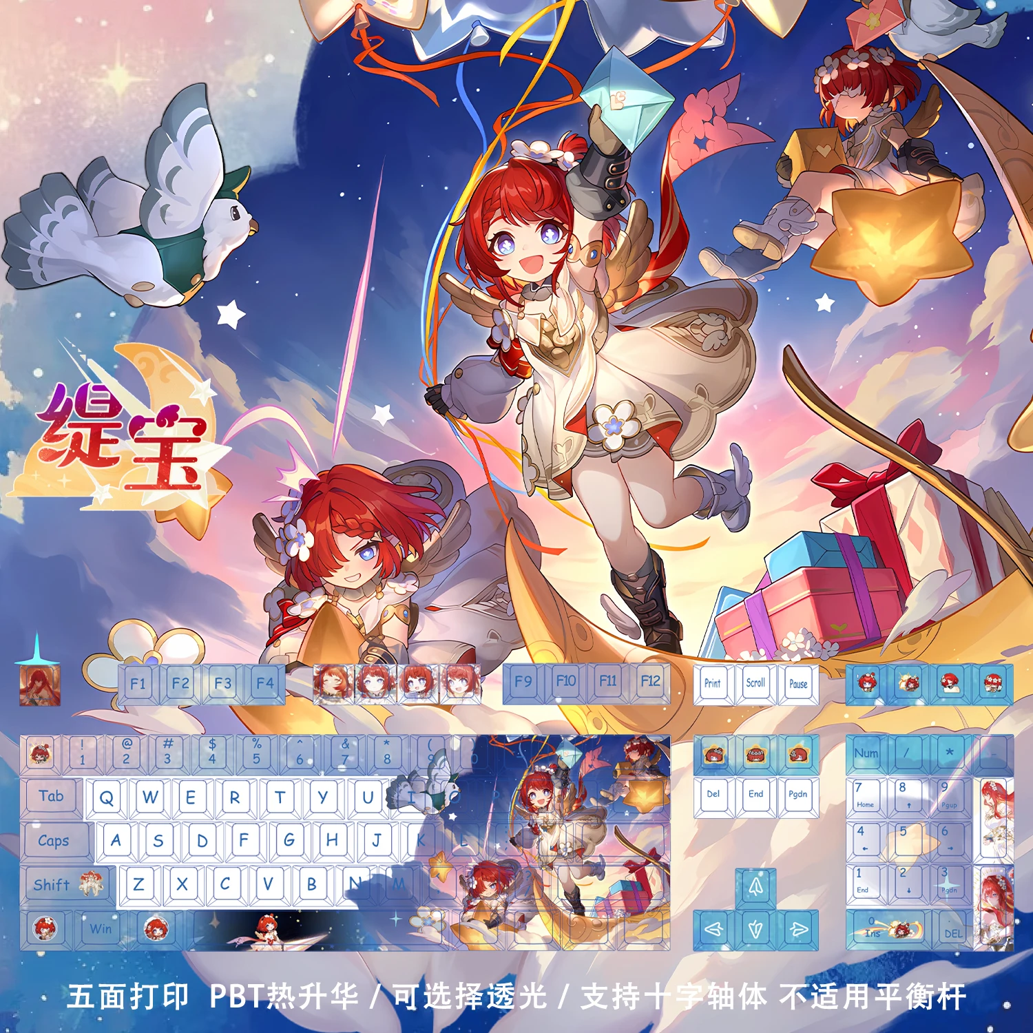 Comprar 128 teclas Honkai Star Rail Tribbie teclas PBT Dye-Sub retroiluminadas teclas de dibujos animados de Anime para teclado ANSI 61 68 87 104 108