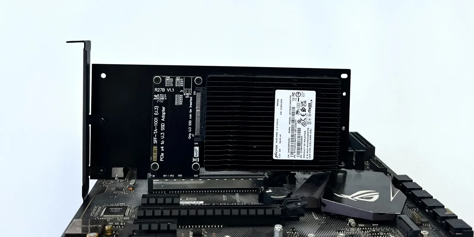 ModeloDescripcionesAncho de bandaR27ATarjeta adaptadora PCIe 5.0 x4 a U.2 (SFF-8639)Gen5 x4R27BTarjeta adaptadoraGen5 x4R27CTarjeta adaptadoraGen5 x4