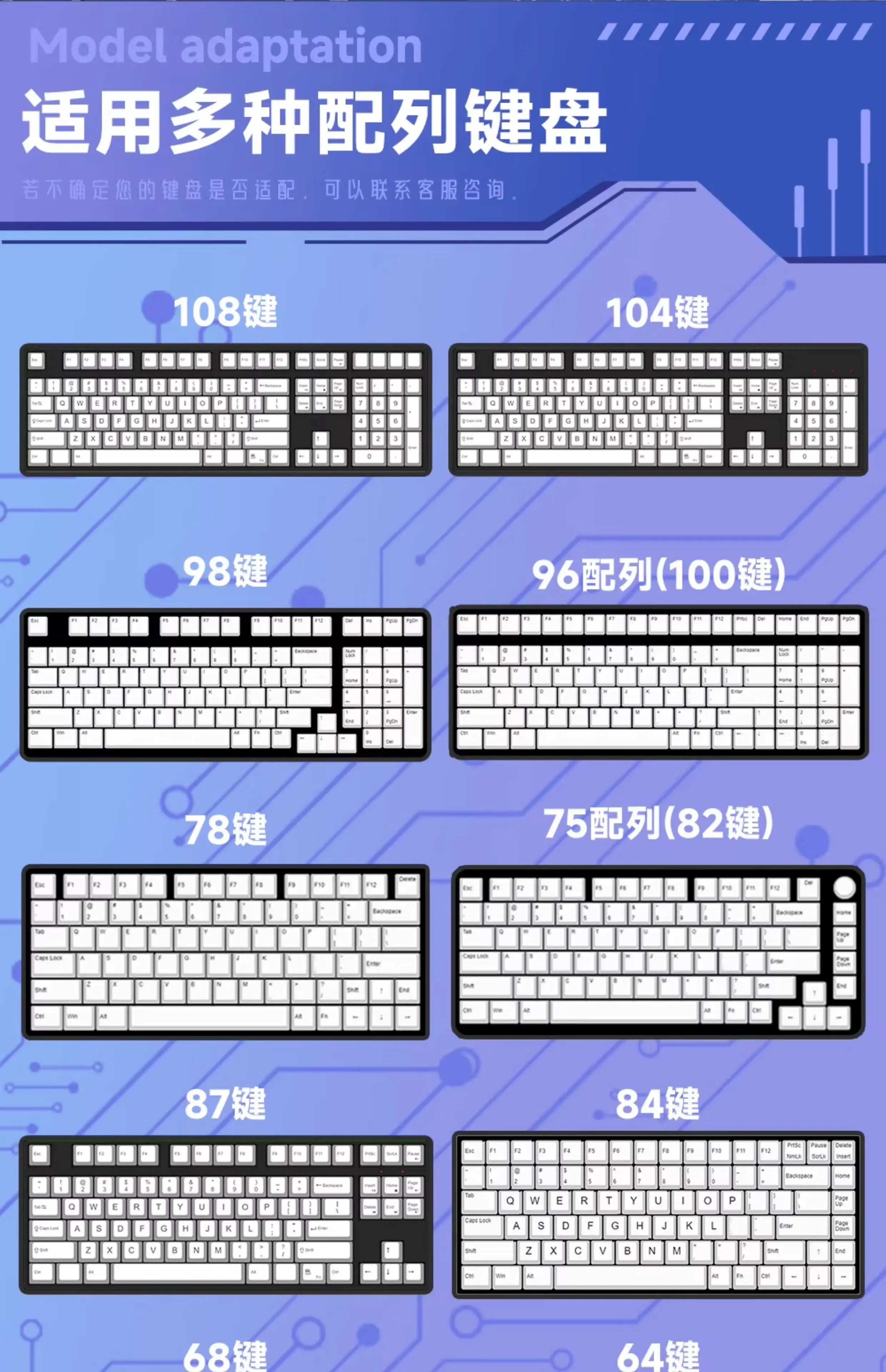 Amplia compatibilidad:Este juego de 129 teclas se adapta a la mayoría de los teclados del mercado, como