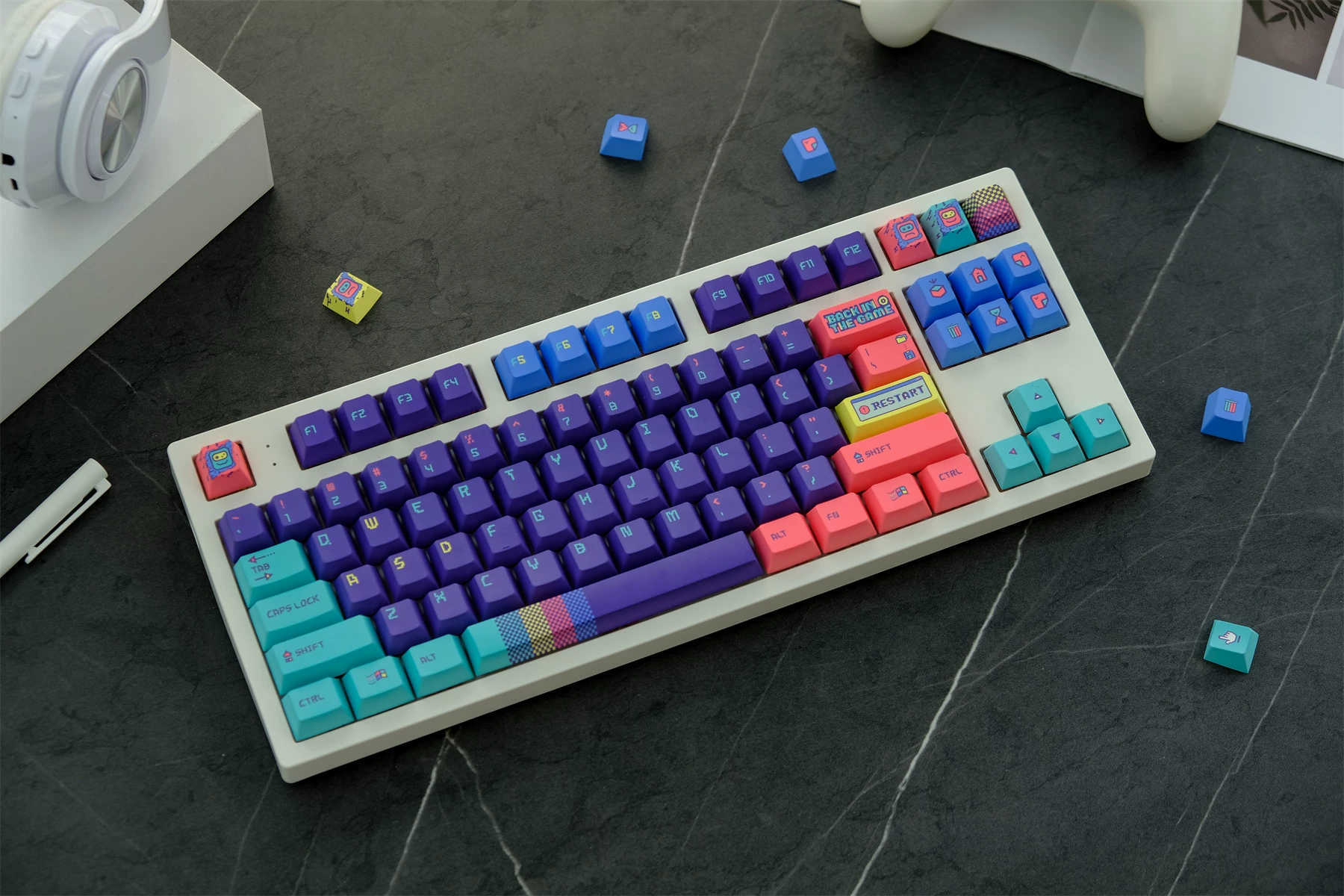 Total de 129 teclas, incluye 1.75U, cambio 2U, es compatible con61、63 64、65 67 68、80 84、87、96、980、104、108Teclado mecánico con interruptores MX, etc.