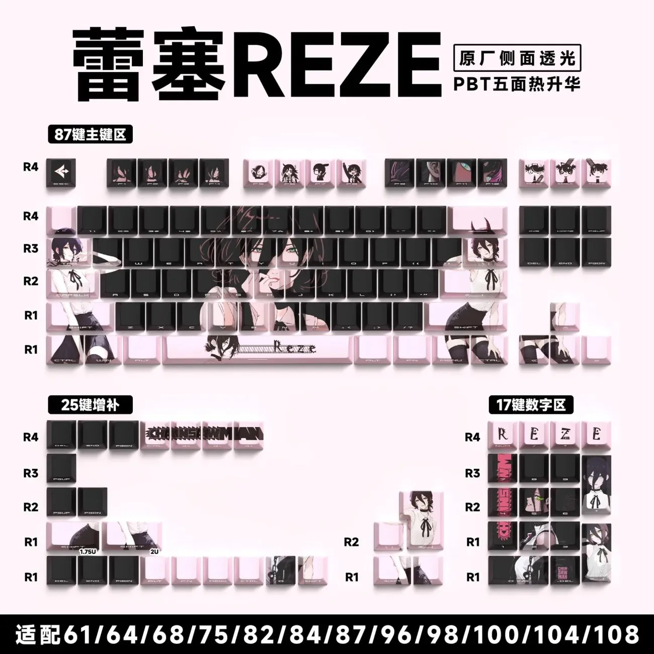 Comprar 129 teclas translúcidas Reze2.0 Keycaps motosierra hombre tema Anime PBT Dye-sub teclado Keycaps Cherry perfil teclas para interruptor MX