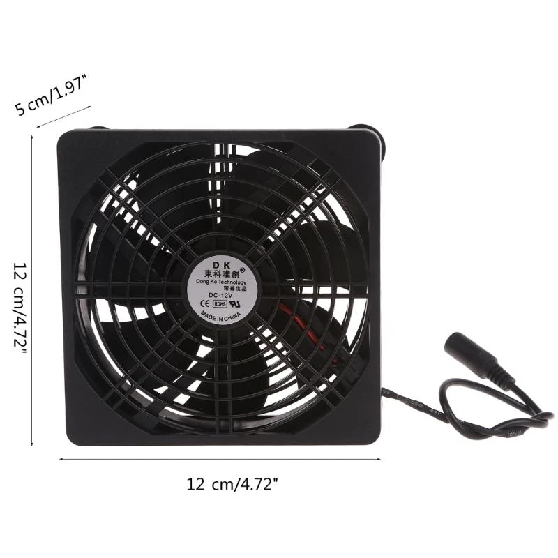 La entrada de energía es de 5,5x2,1 mm y este ventilador solo se puede utilizar con alimentación de 12 V CC.