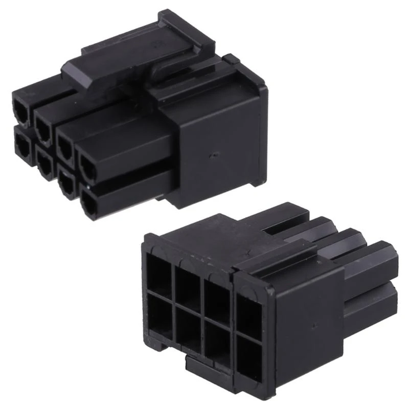 El conector de cable de 8 pines (6 + 2 pines) a presión tiene un diseño exclusivo con color negro y un marco rectangular para proporcionar agarre del cable y eliminar cualquier problema de alimentación por cortocircuito del conductor.