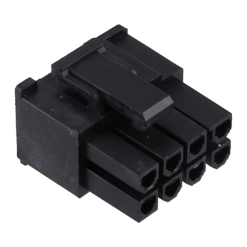 El conector de cable de 8 pines (6 + 2 pines) a presión tiene un diseño exclusivo con color negro y un marco rectangular para proporcionar agarre del cable y eliminar cualquier problema de alimentación por cortocircuito del conductor.