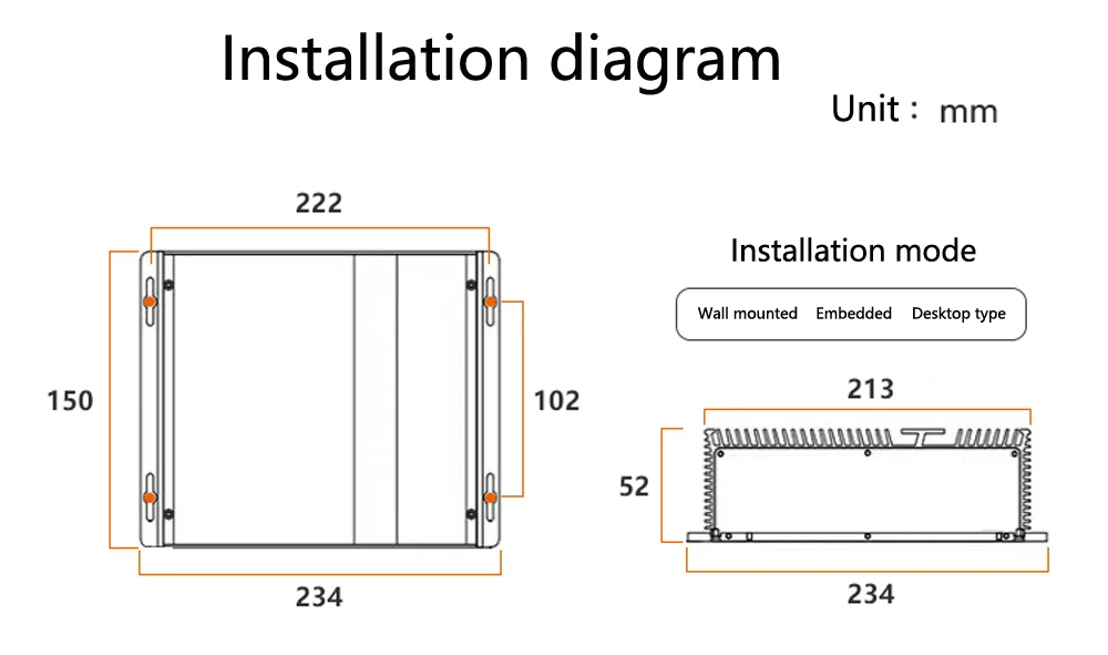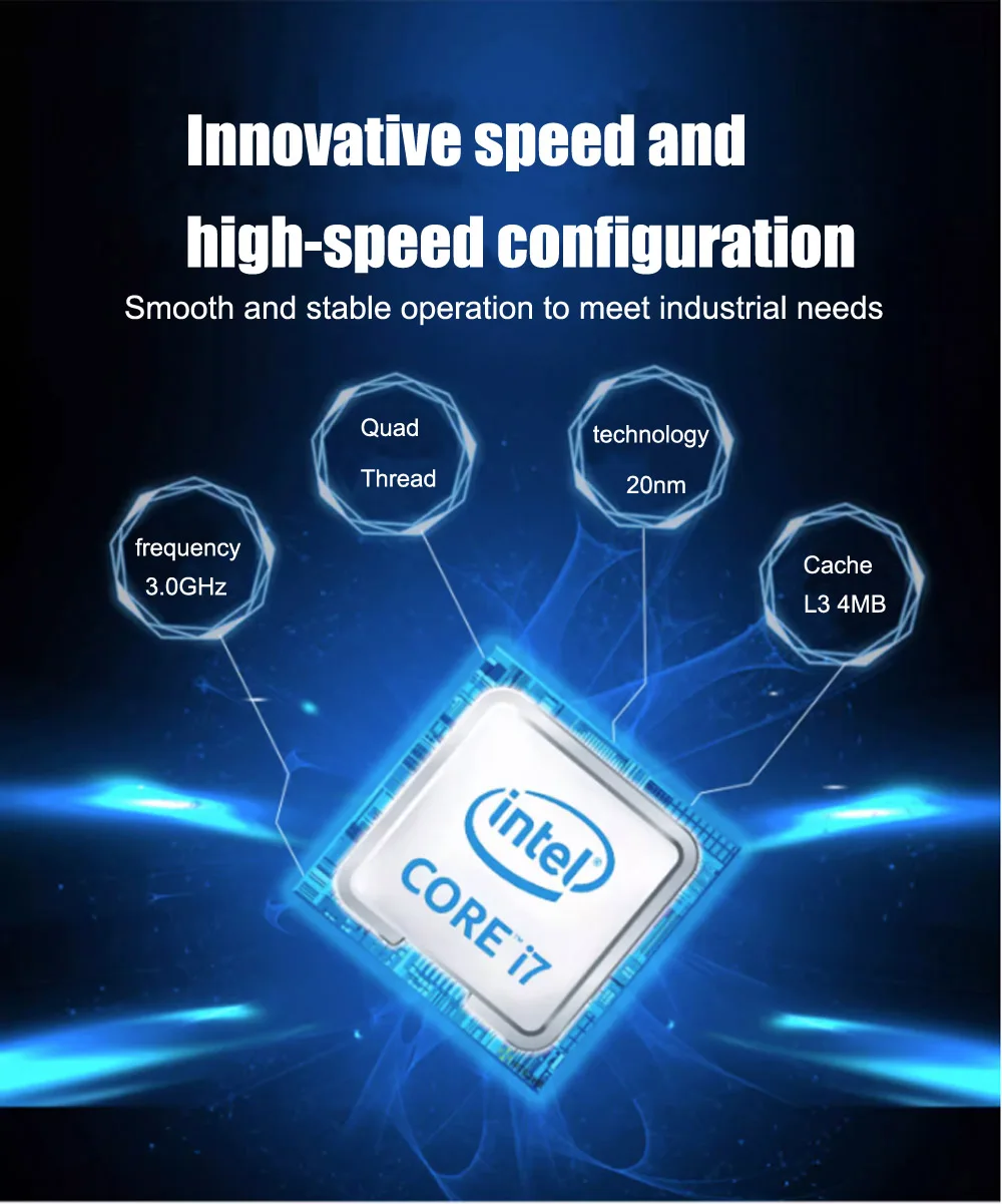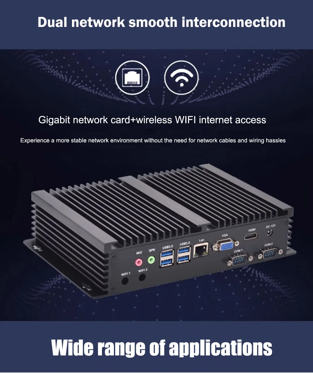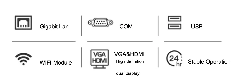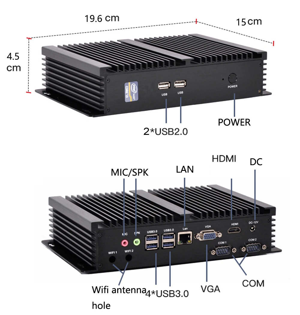 1 * HDMI, 1 * VGA, 1 * puerto LAN RJ45, 4 * USB3.0, 3 * USB2.0, 1 * entrada CC, 1 * micrófono, 1 * SPK, 2 * COM
