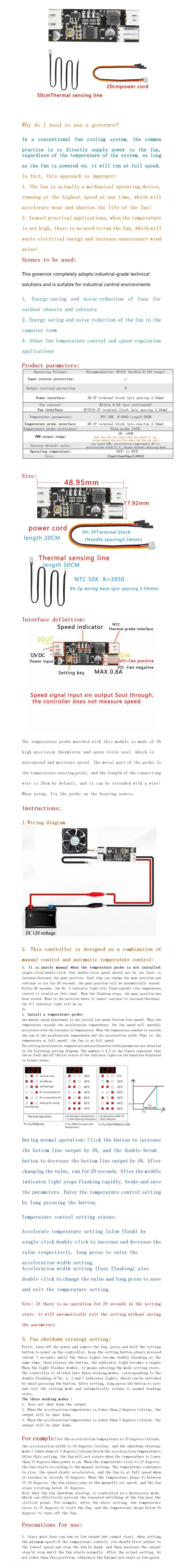 Controlador de velocidad de control de temperatura único de 12 V
