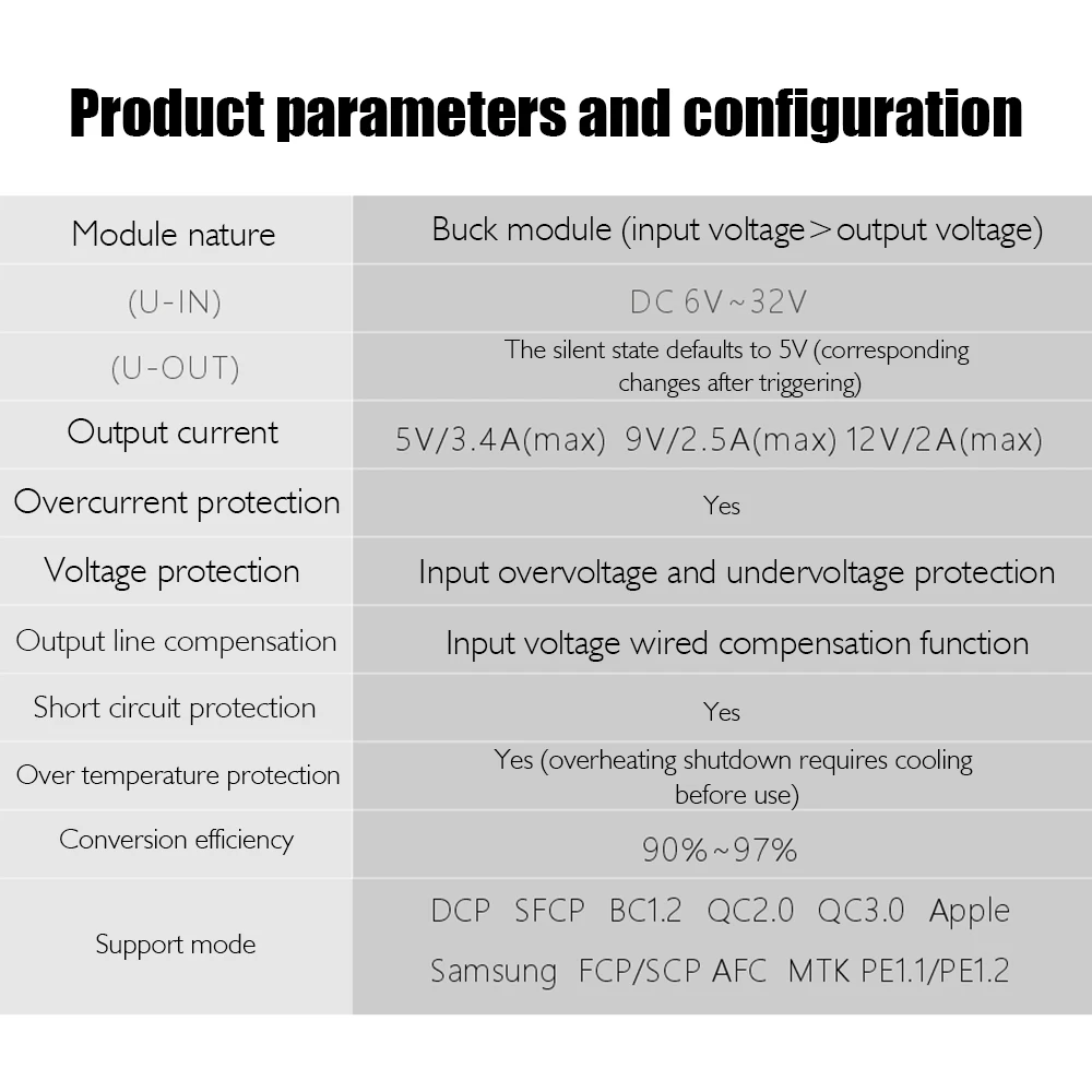 12V a 5V 3A 15WCaracterística:Rectificación sincrónica, tasa de conversión ≥ 96%, calor muy bajo. Con protección contra sobrecarga/sobrecorriente/sobrecalentamiento/cortocircuito, vuelve al trabajo normal. Todos los contenedores sellados con epoxi con carcasa impermeable. Diseño compacto, alta eficiencia, fácil de instalar y usar.Entrada: CC 8 -20V, (12V se convierte en 5V)Salida: DC 5V, 3A, 15W12V a 5V 2A 10WEspecificaciones:Entrada: DC 7V-50VSalida: DC 5V 2APotencia: 10WInterfaz: USB/Micro USB/Mini USB/2 cablesTodos los contenedores de epoxi sellados con carcasa impermeable.Rectificación sincrónica, la tasa de conversión es ≥ 96%, muy bajo calor.Con sobrecarga/sobrecorriente/sobretemperatura/cortocircuito para protecciónDiseño compacto, alta eficiencia, fácil instalación y uso.Tamaño: 46x27x14mmEl paquete incluyeSegún su elección
