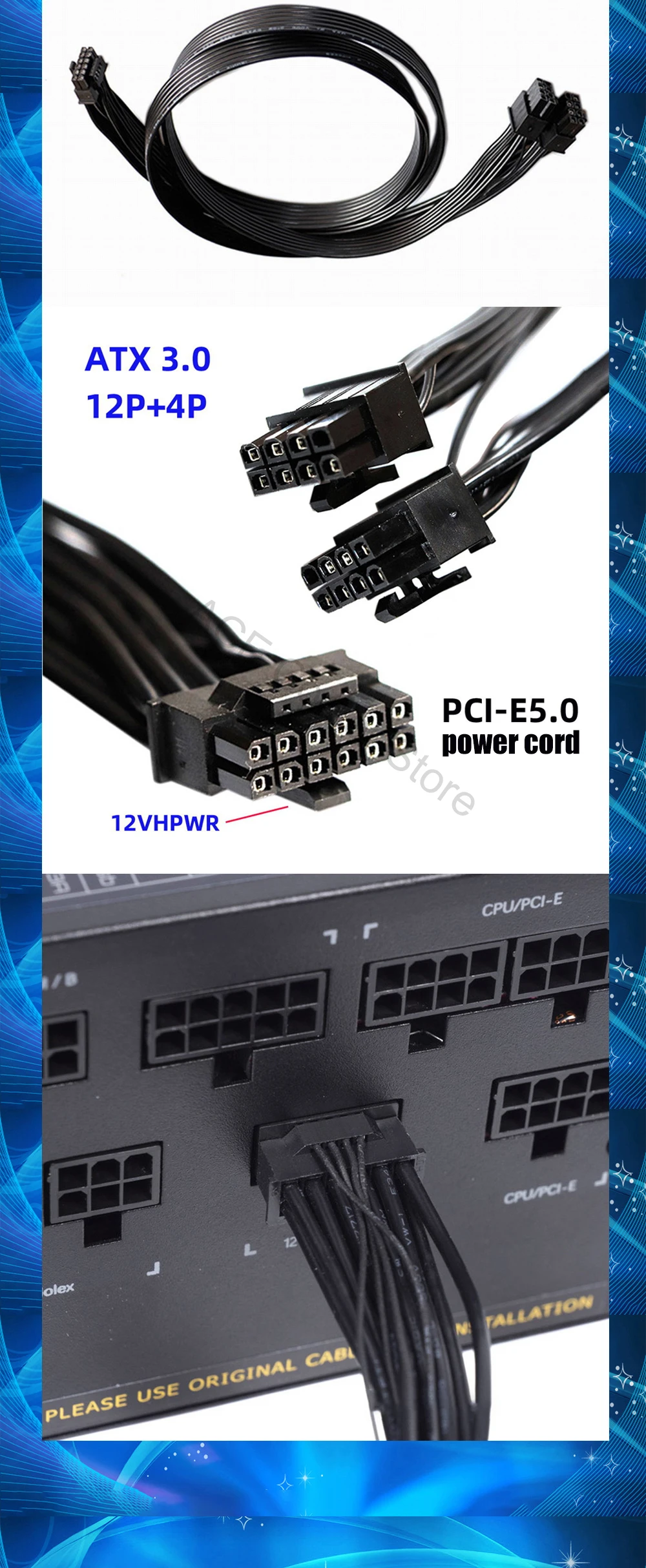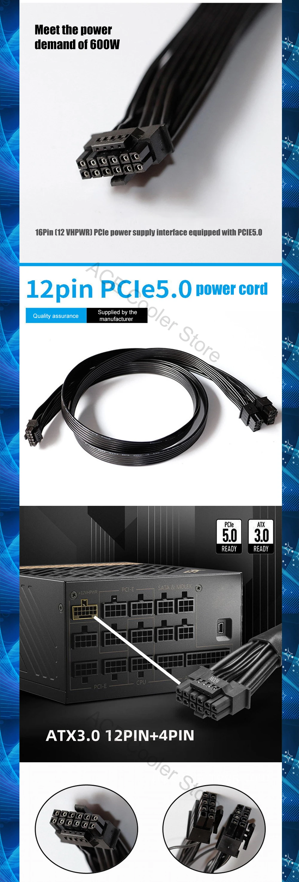 12VHPWR 12Pin PCI-E 5.0 PSU Cable adaptador ATX 3.0 12P+4P 600W o 3090Ti 4080 4090 Tarjeta gráfica