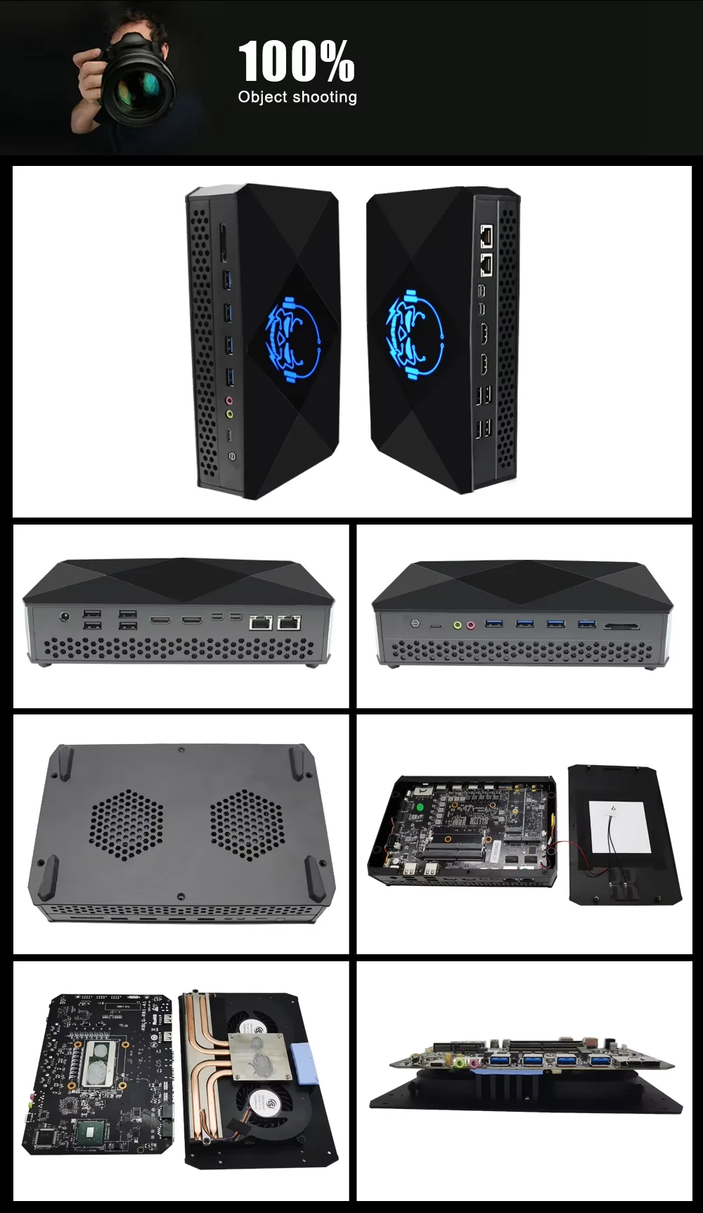E/S trasera: 3 x HDMI2.0 (4K@60Hz), 1 x USB 3.0, 2 x USB 2.0, 2 x LAN RJ45 de 2,5G, 1 x DC-IN