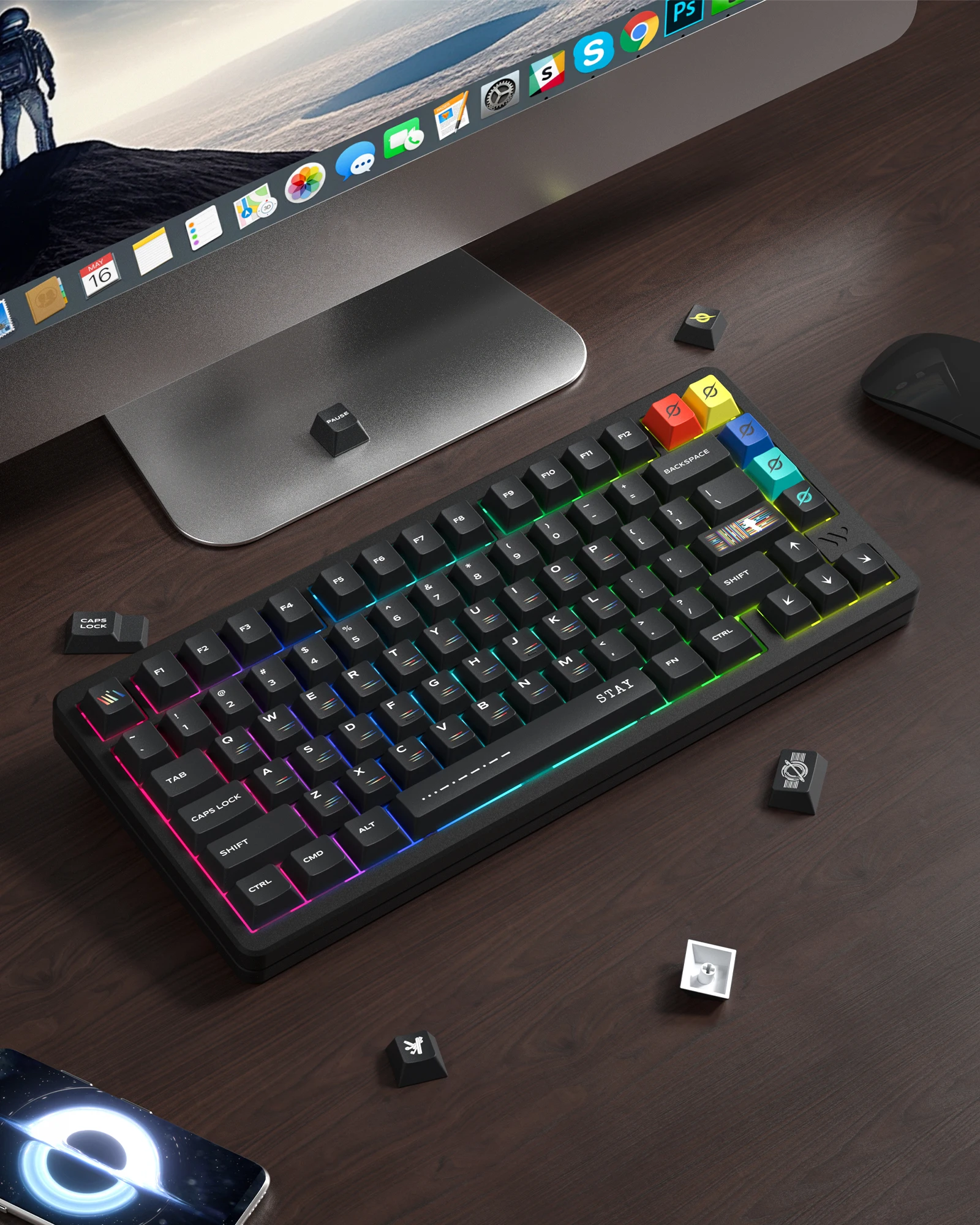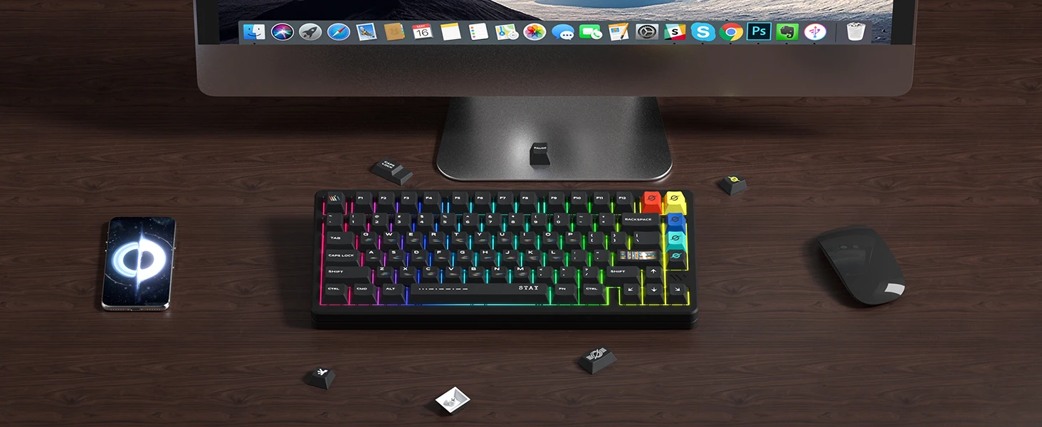 【Compatibilidad universal】 Las teclas personalizadas contienen 104 teclas + 27 modificadores de teclas, lo que le permite una compatibilidad total con los teclados 100%, TKL, 65% y 60%.