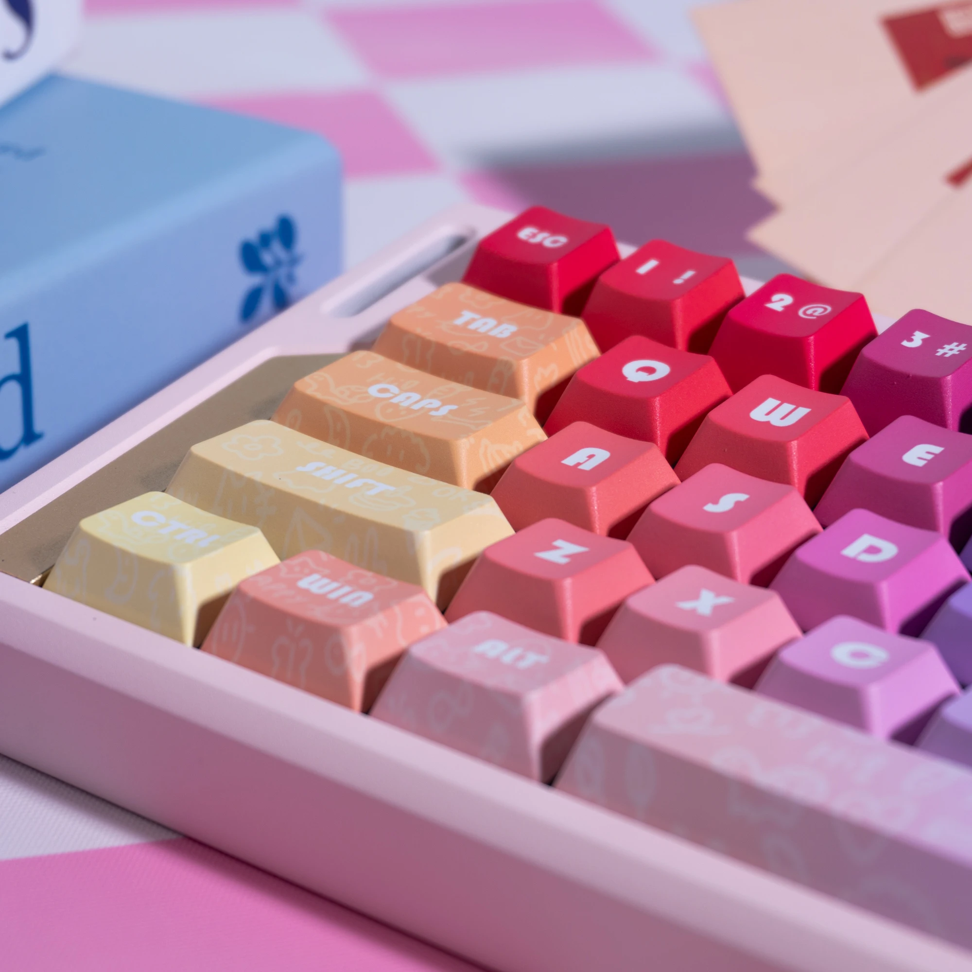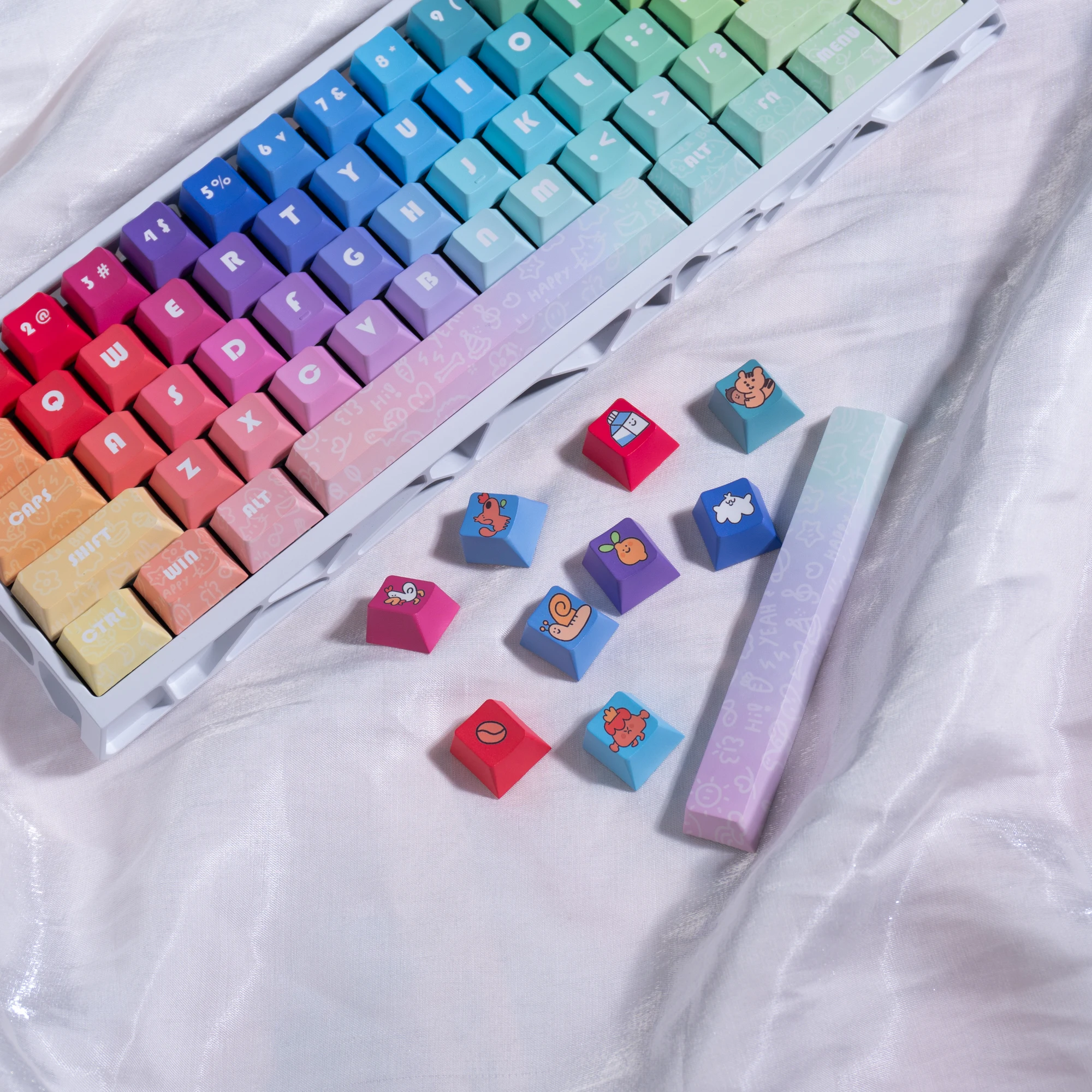 【Teclas de sublimación de diep】En la animadora ciudad moderna, las teclas Womier PBT crean una sensación estética especial con la asociación de anime.La cubierta de las teclas adopta un proceso avanzado de sublimación de tinta de cinco lados.Con ricas teclas complementarias, es muy útil cuando estás en el teclado de bricolaje.