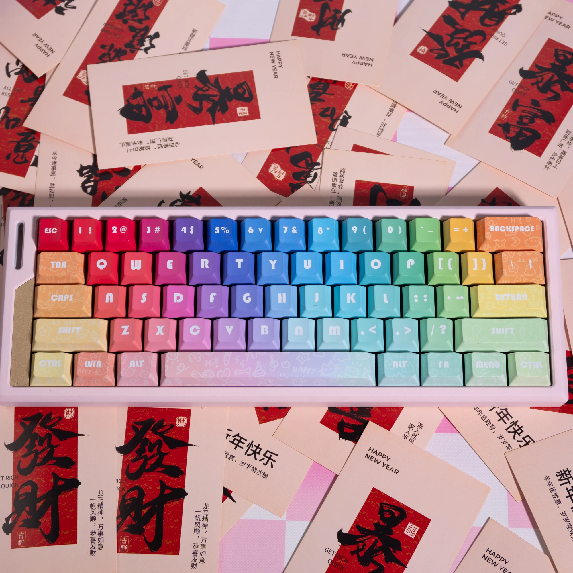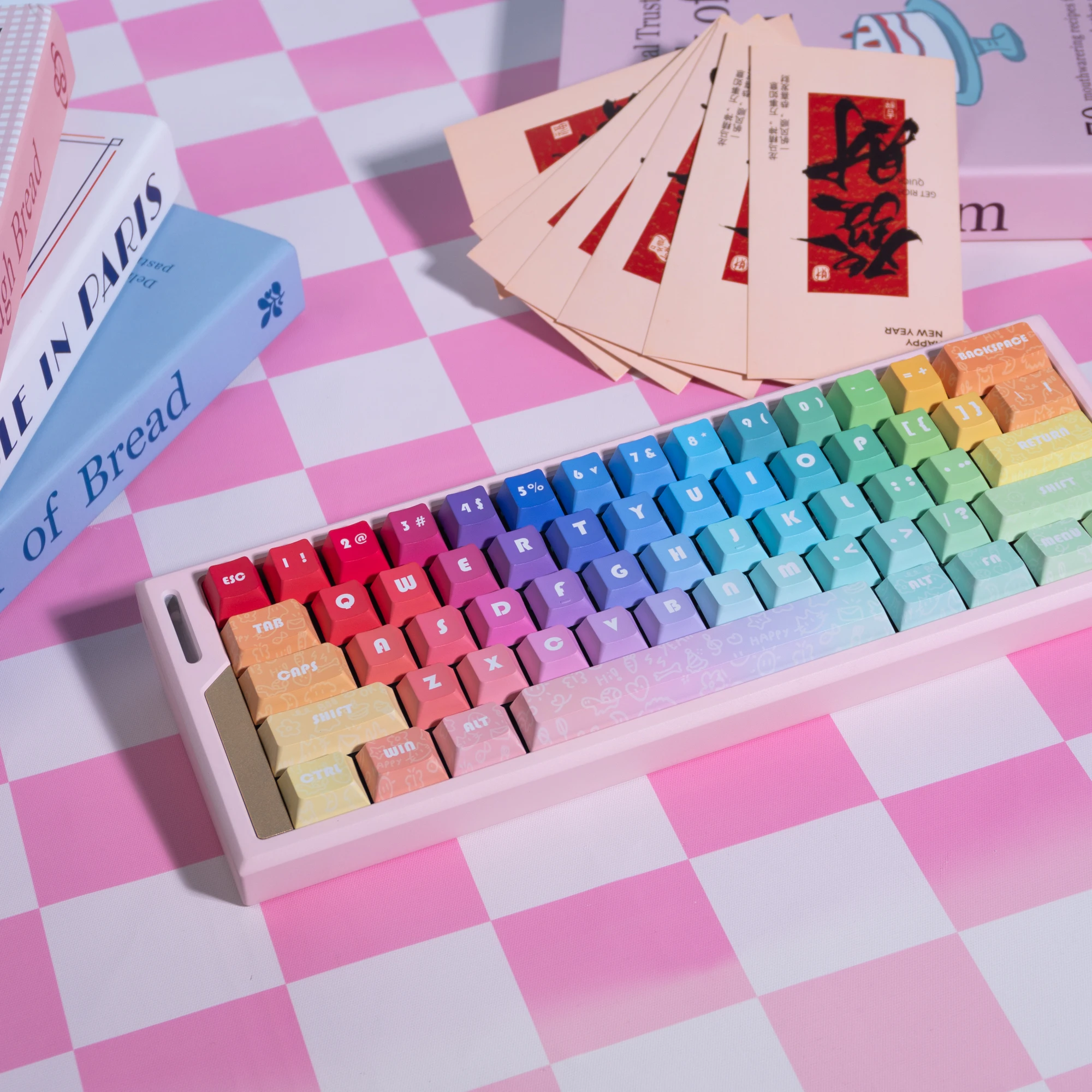 Comprar Más de 130 teclas, teclas PBT de arcoíris, perfil de cereza, teclas sublimes de tinte aduanero para interruptores Cherry MX, Teclado mecánico para jugadores