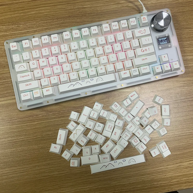 Comprar 131 teclas Cherry Profile Graffiti Keycap para teclado mecánico para jugar sublimación de tinte PBT Keycaps minimalistas teclas blancas DIY